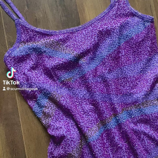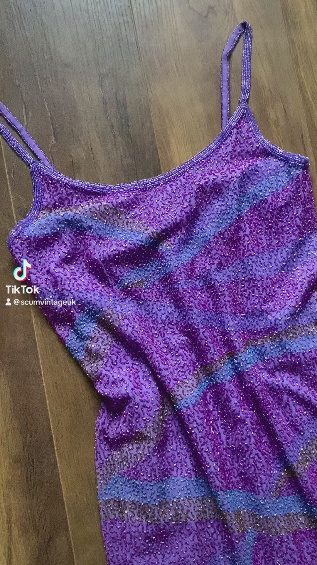 Purple After Six beaded 100% silk evening dress with a zip up the back UK 10