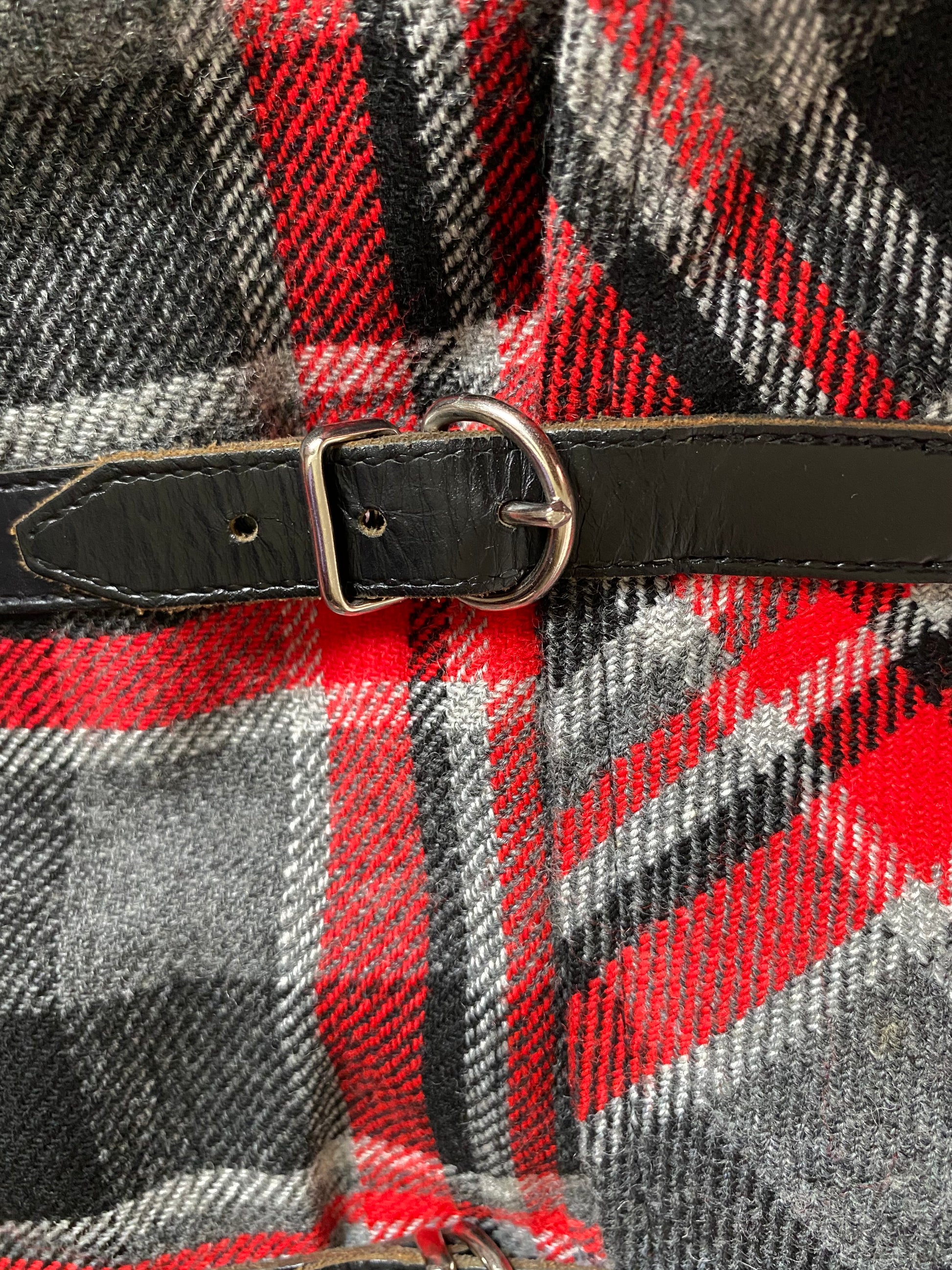 Red & grey tartan wool blend wrap maxi skirt with buckle detailing to one side UK 10