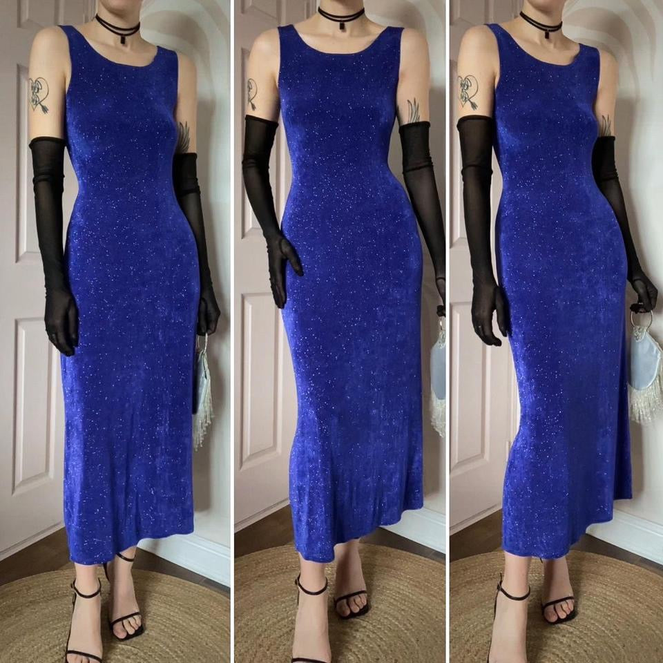 🌹Electric blue glittery stretch body con evening dress UK 10🌹