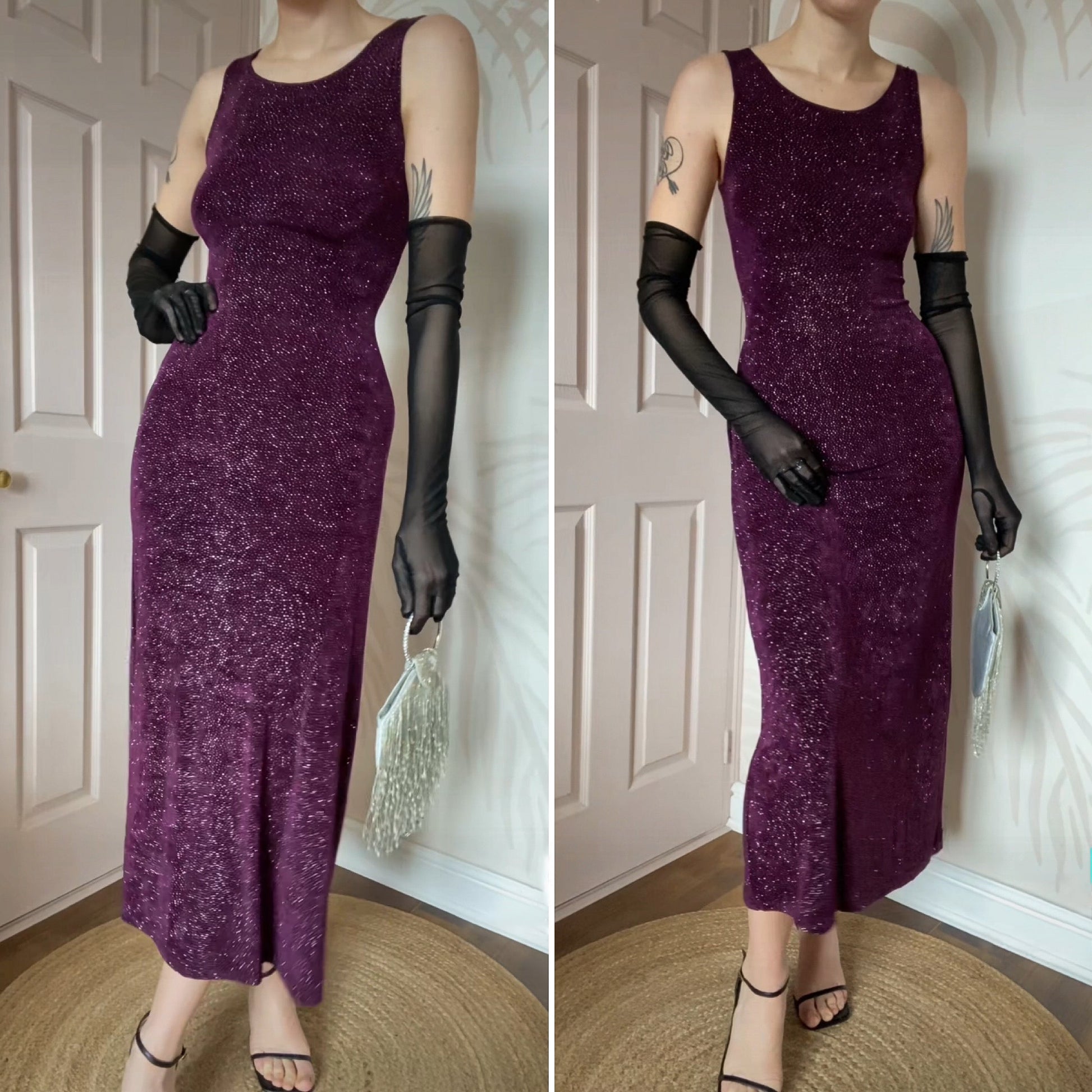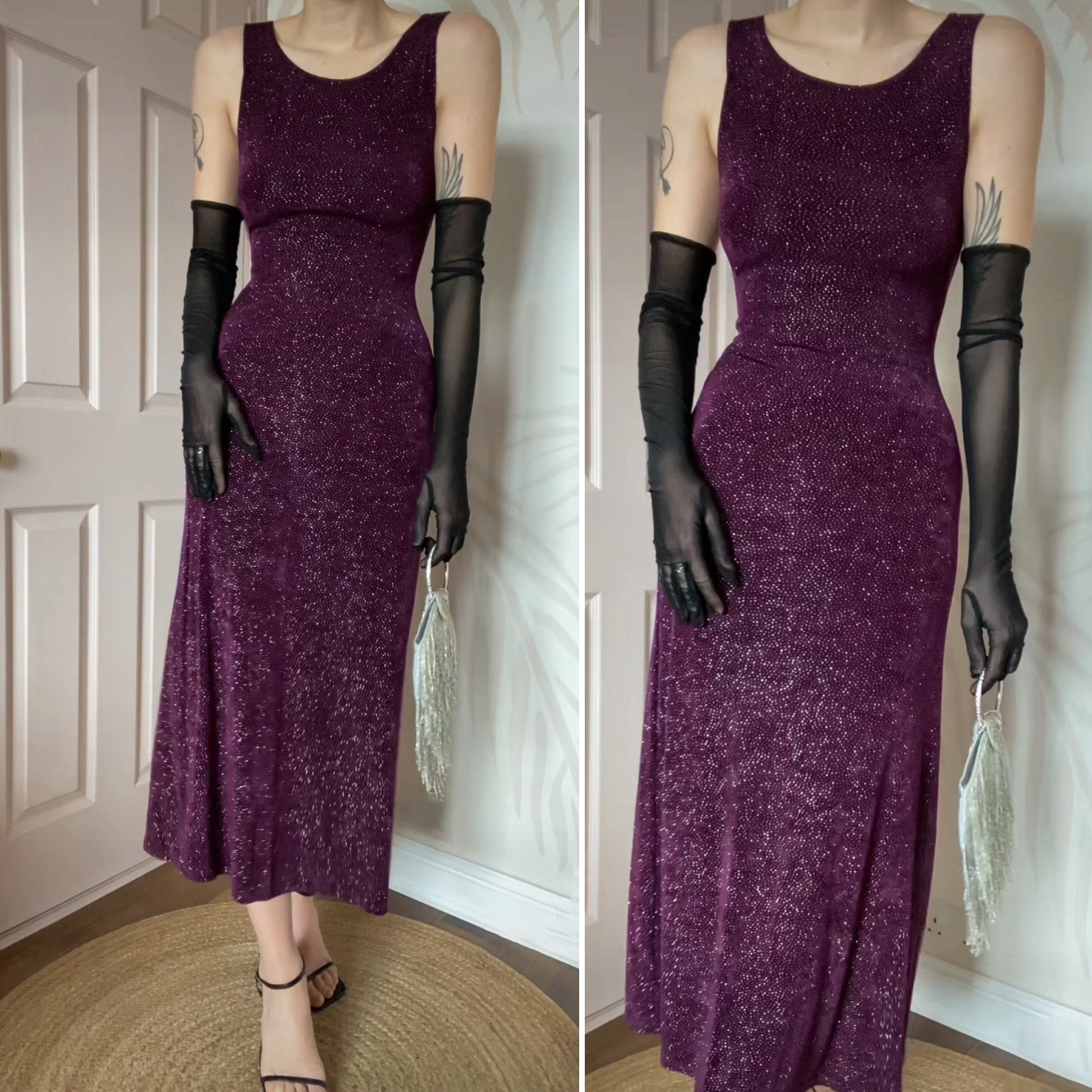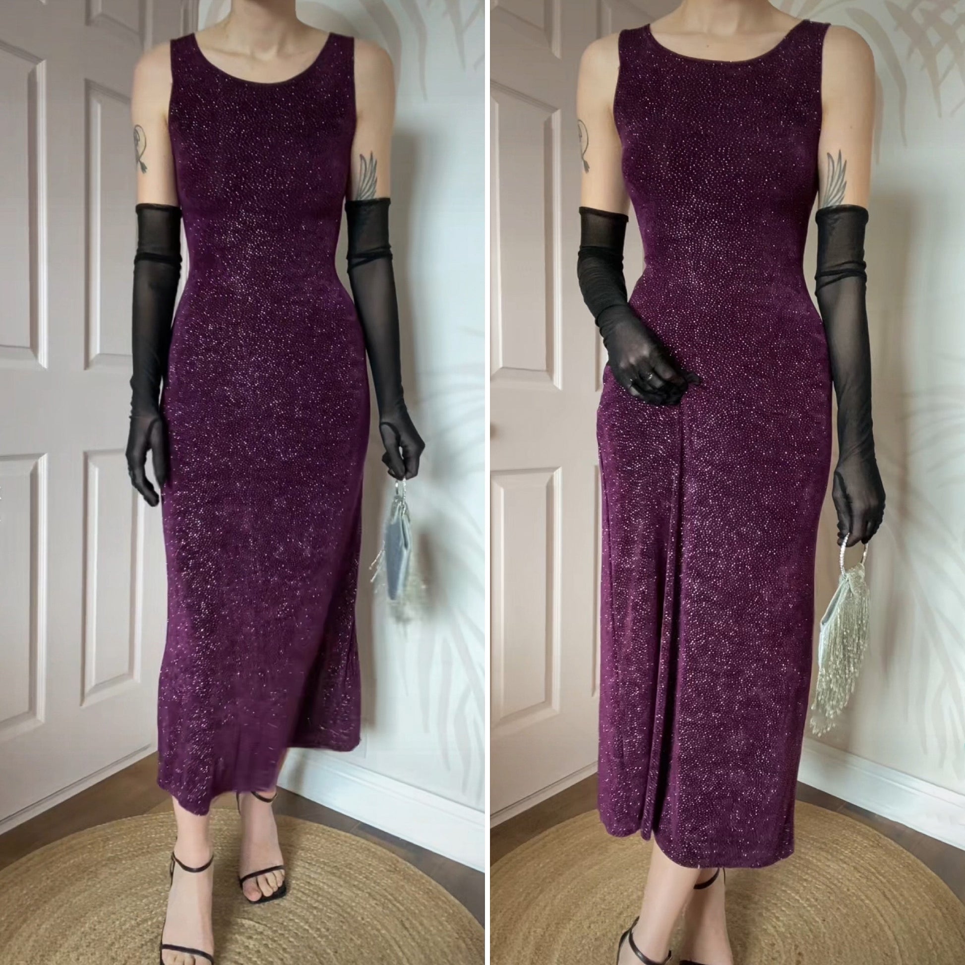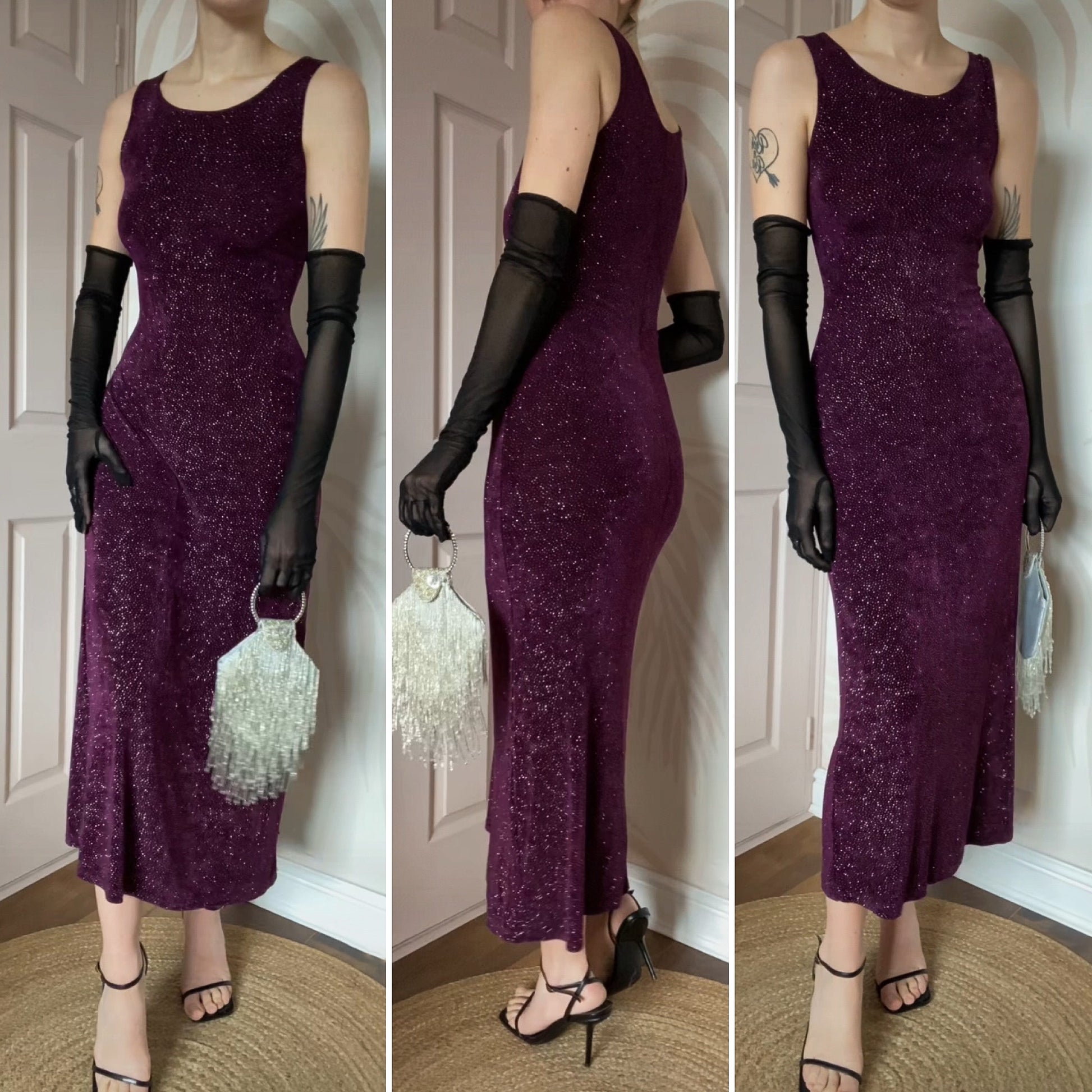 🌹Plum purple glittery stretch body con evening dress UK 12 & 14 available🌹