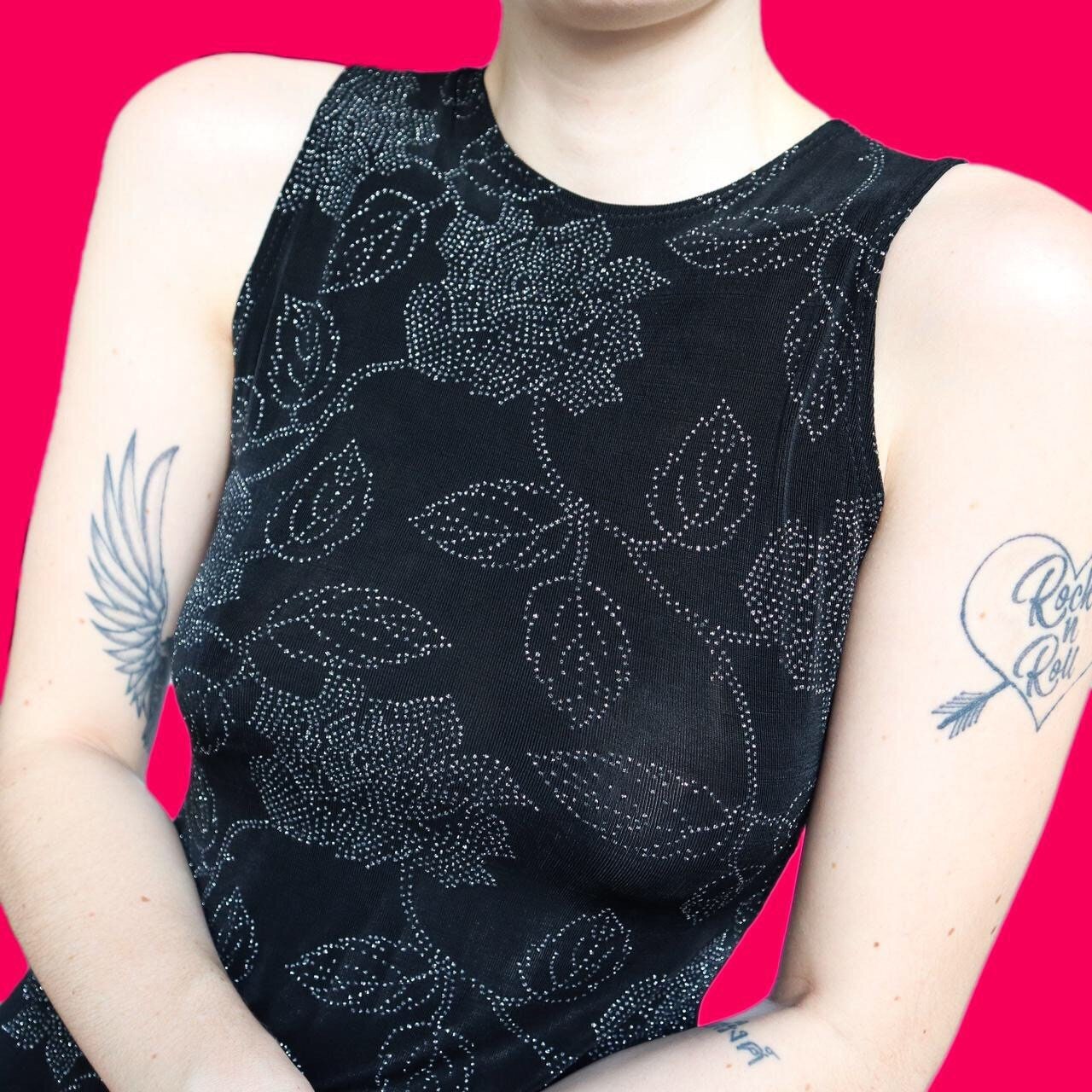 Beautiful 90s vintage black stretch glittery maxi dress UK 12