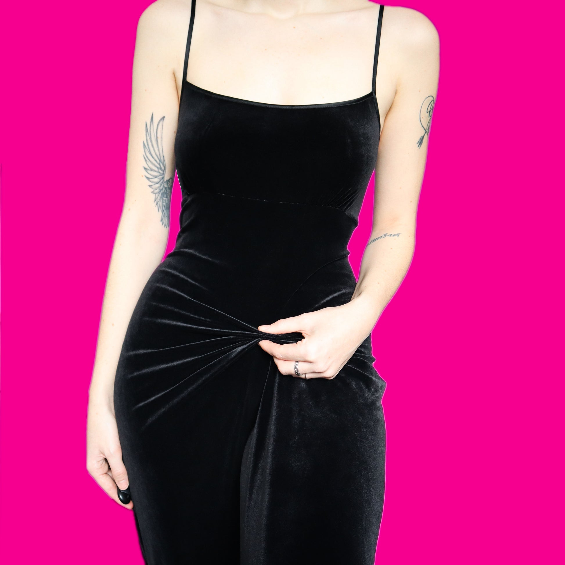 🌹Beautiful black velvet stretch slip dress UK 14🌹