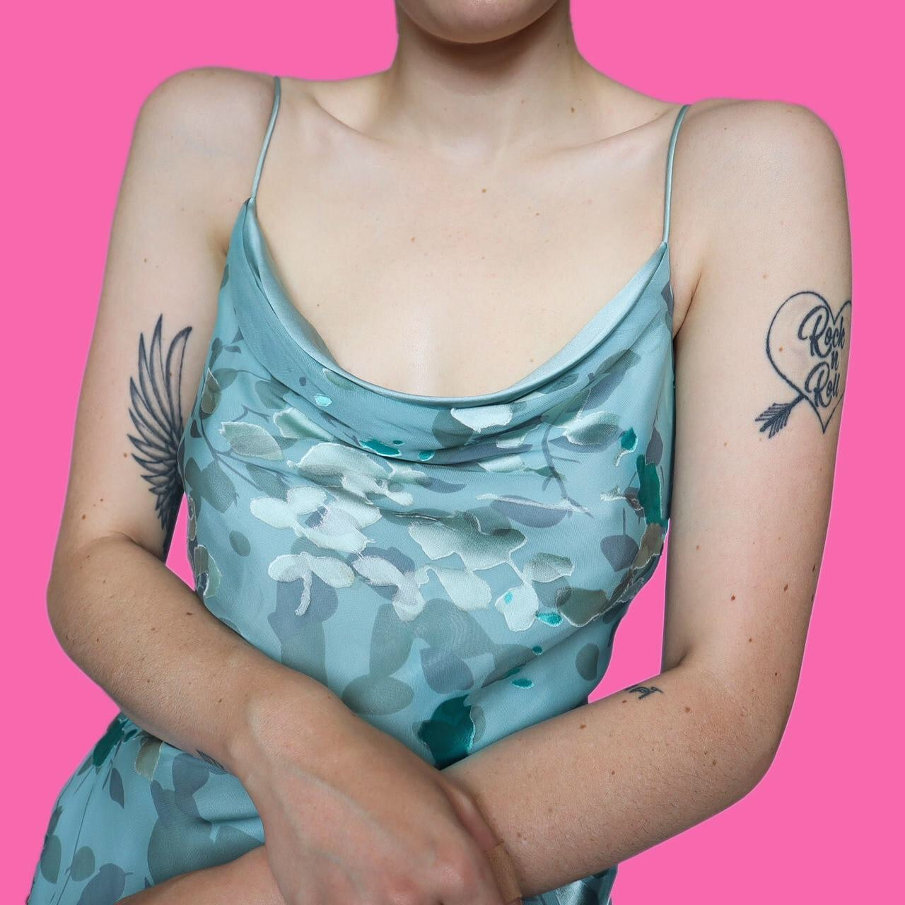 🌹Beautiful silk blend leaf print slip evening dress with a cowl neckline UK 12🌹