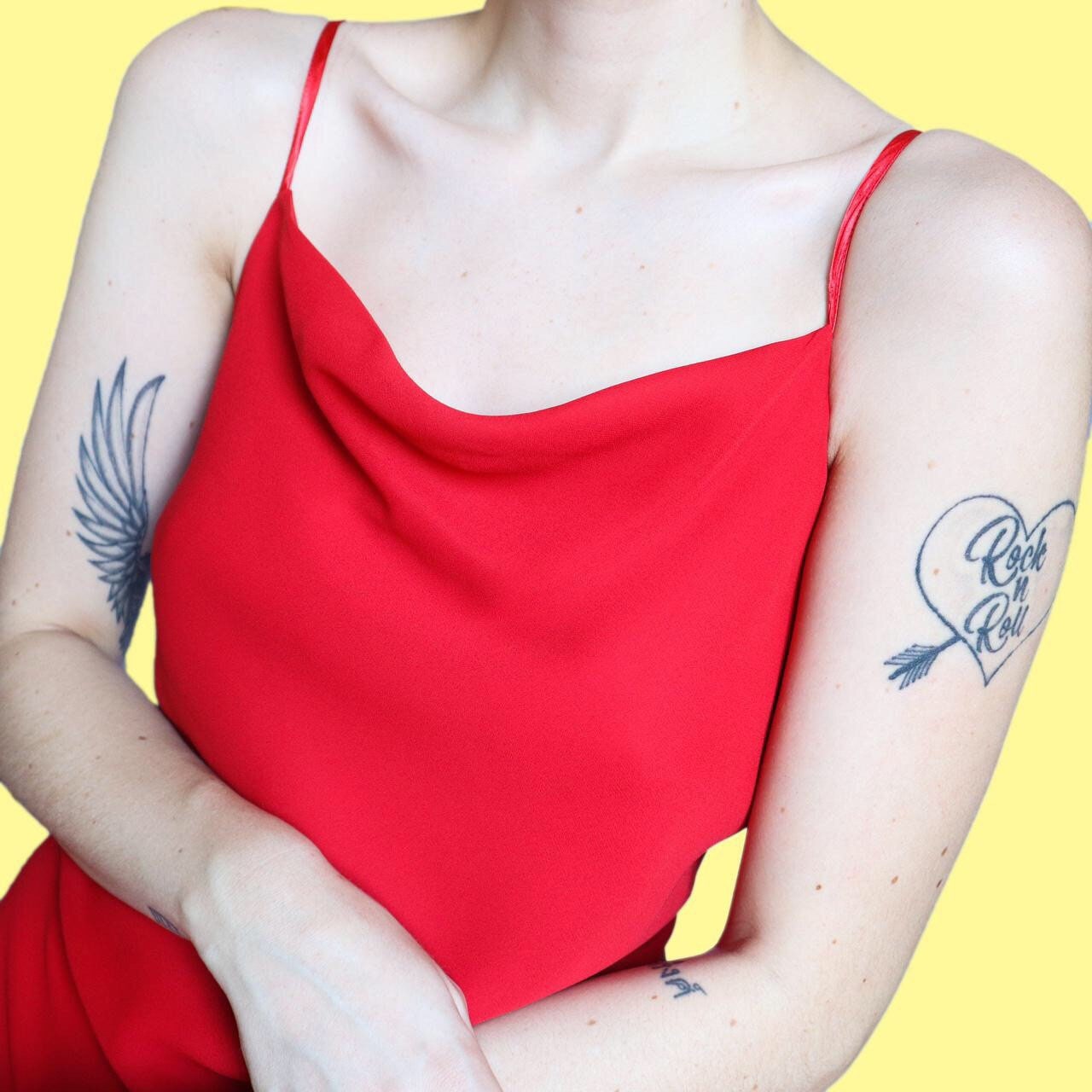🌹Stunning bold red chiffon slip dress with cowl neckline & matching shawl UK 14🌹