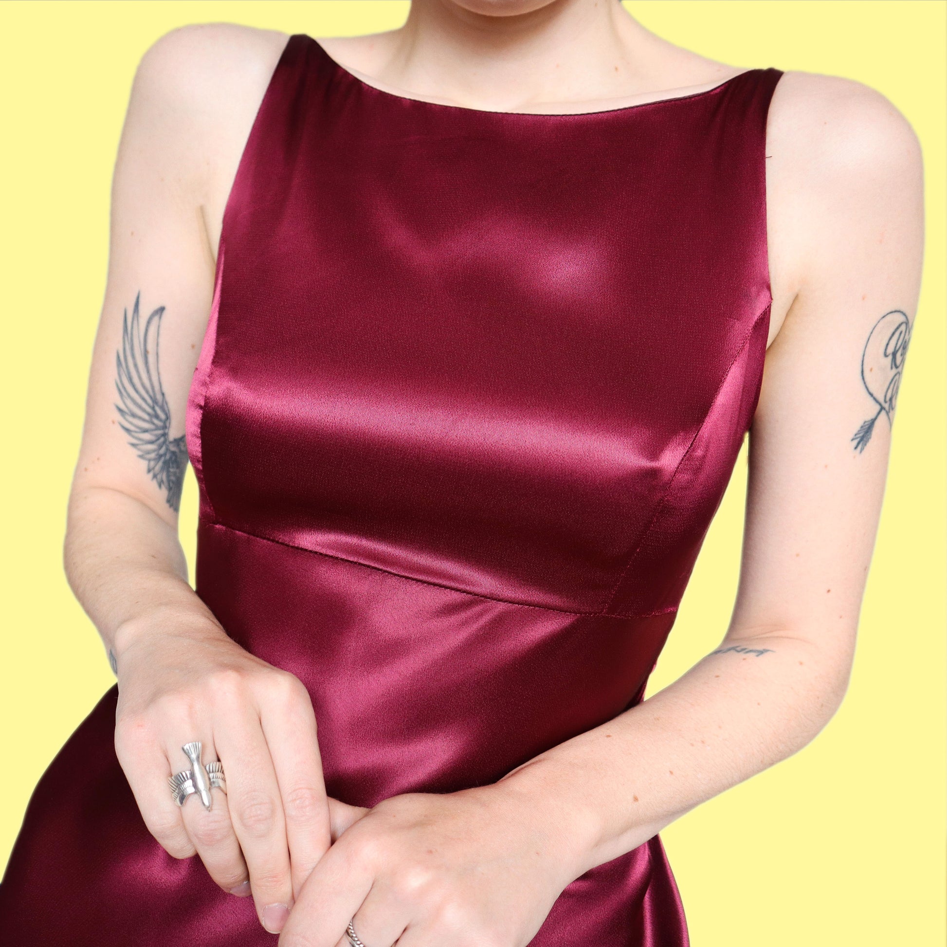 🌹Beautiful red satin slip dress with low back & a zip up the side UK 10🌹