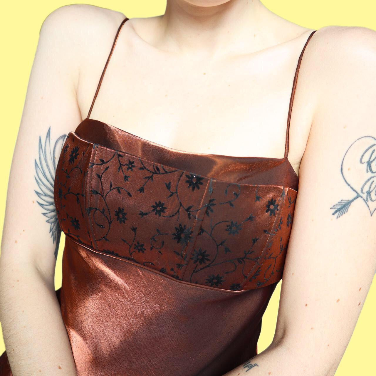 🌹Beautiful silky evening dress with boned floral bust detail & a zip up the back UK 10🌹