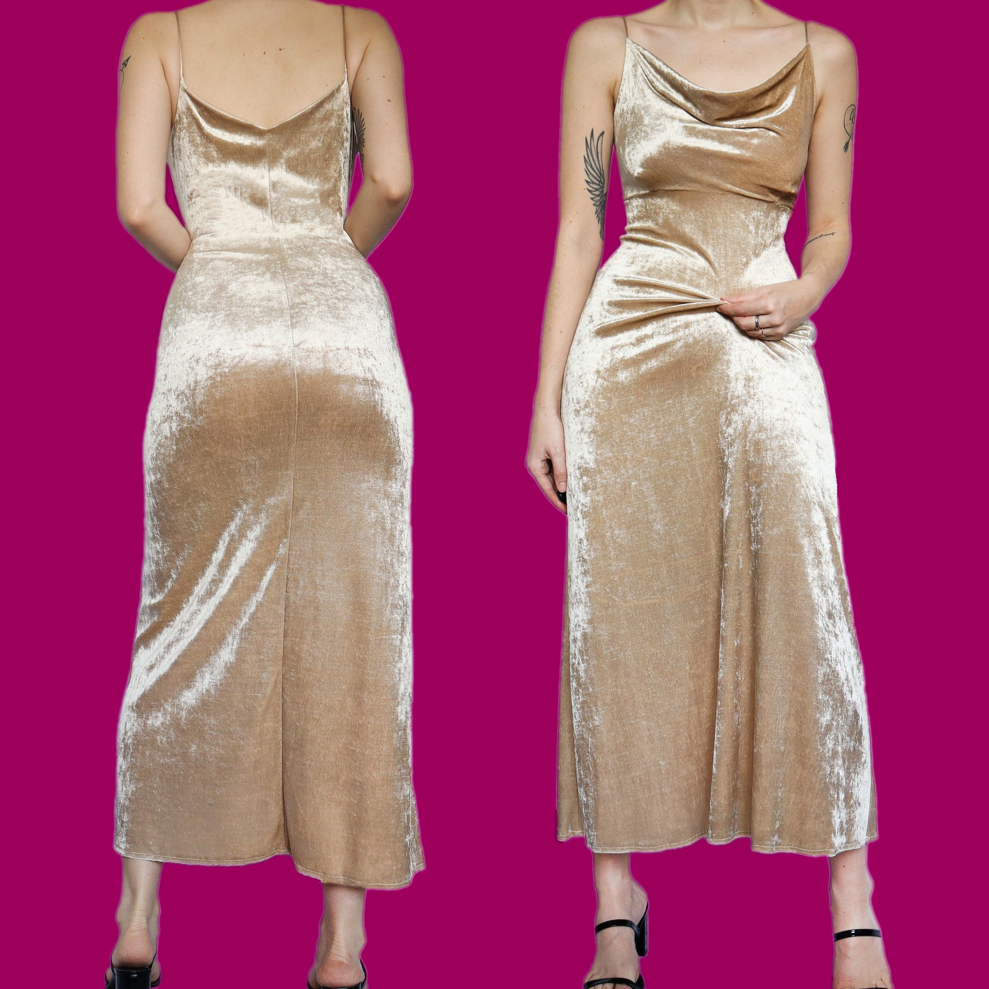 🌹Beautiful soft gold velvet slip dress with a cowl neckline UK 14🌹