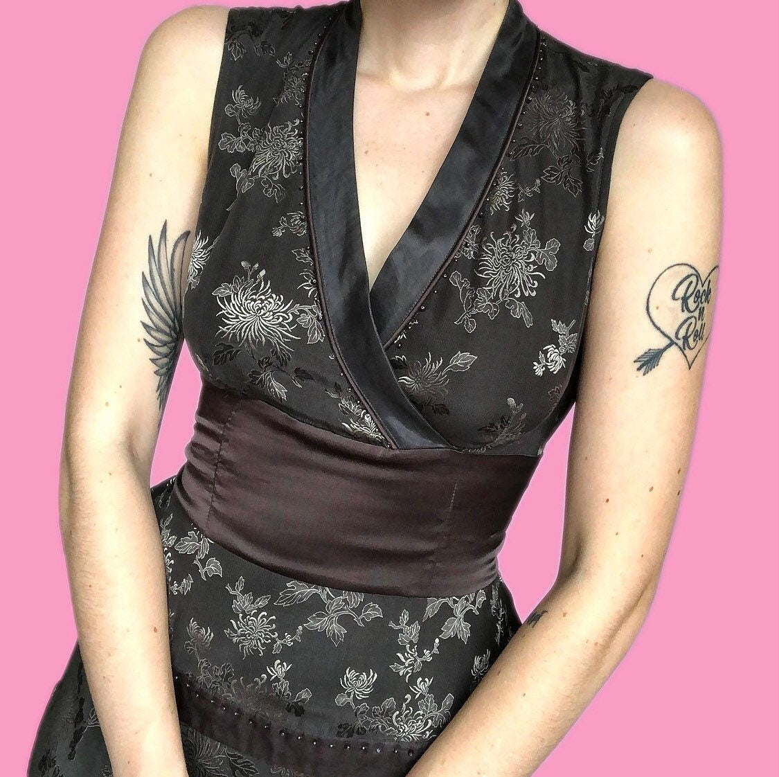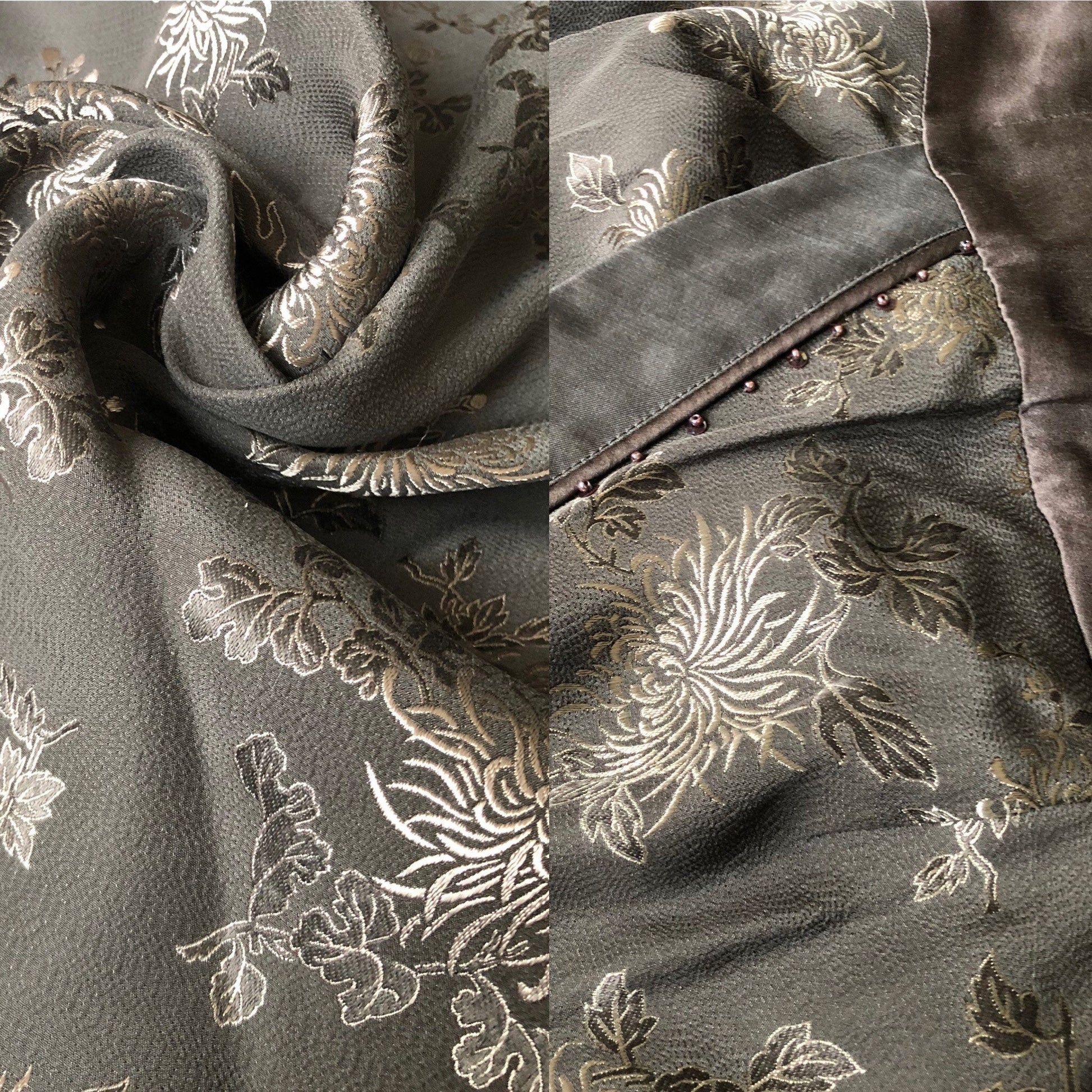 Beautiful vintage silk blend grey floral 2 piece top/skirt set UK 10