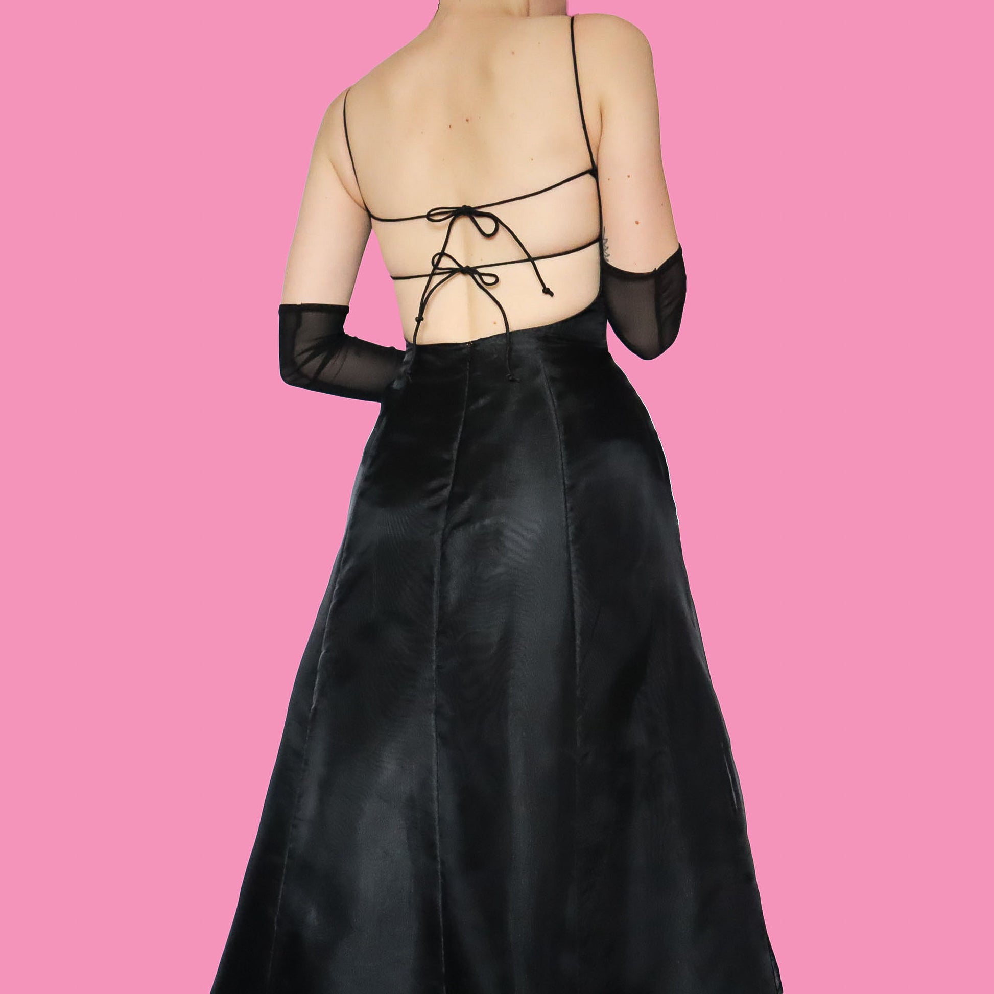 🌹Black a line evening dress UK 8-10🌹Stunning organza beaded black a line prom dress with two ties across the back, a netted underskirt to hold the shape & a zip up the back🌹