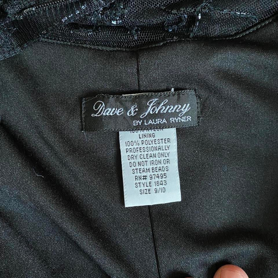 Black beaded 90s vintage sheer back evening dress UK 14