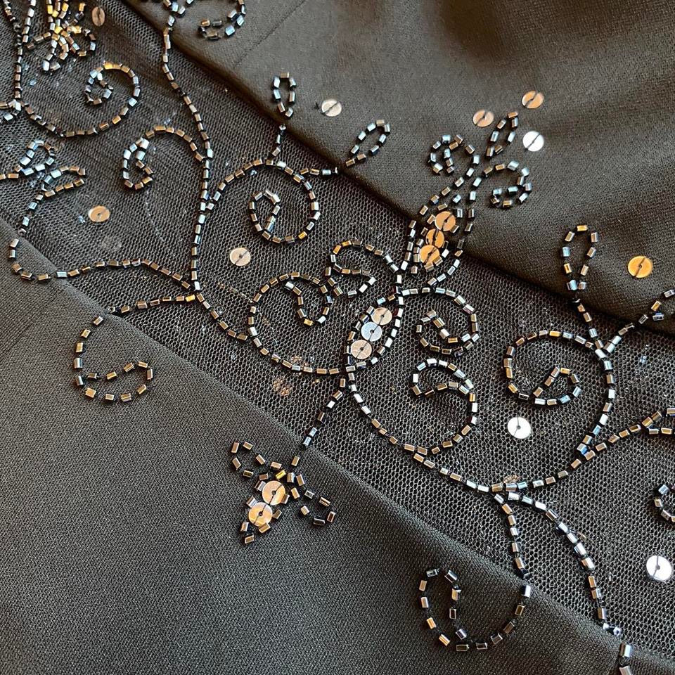 Black beaded sheer cut out evening dress UK 8-10