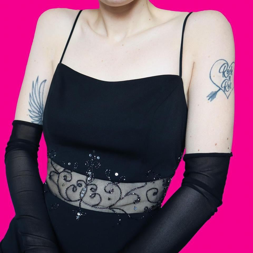 🌹Black beaded evening dress UK 14-16🌹Beautiful black evening dress with a sheer cut out back & waist, bead detailing, a light flared fishtail hem & a zip up the side🌹