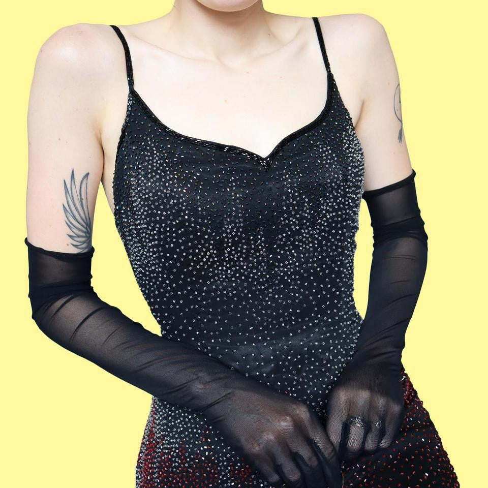 🌹Black & red beaded evening dress with a padded bust & a zip up the back UK 10🌹