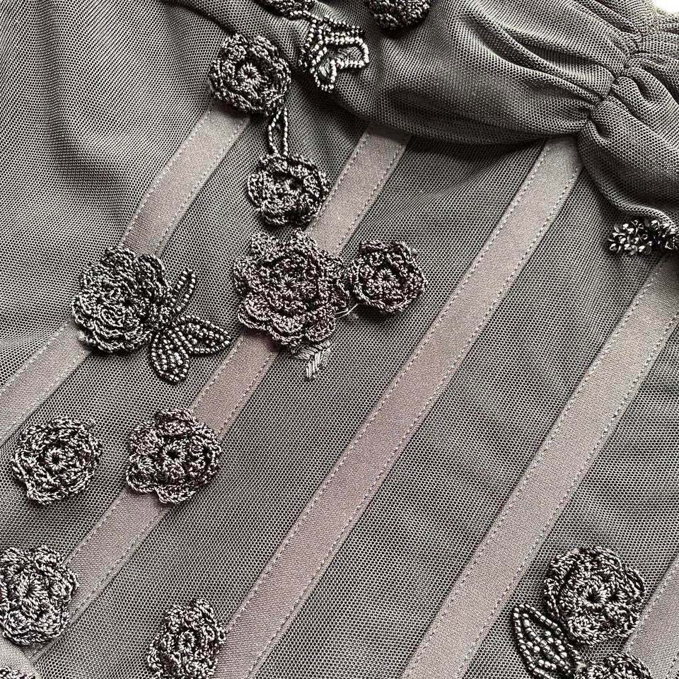 🌹Black sheer waist evening dress UK 14 & UK 16🌹Chic black stretch evening dress with a sheer cut out waist, floral detailing, a slightly longer trail at the back & a zip up the side🌹