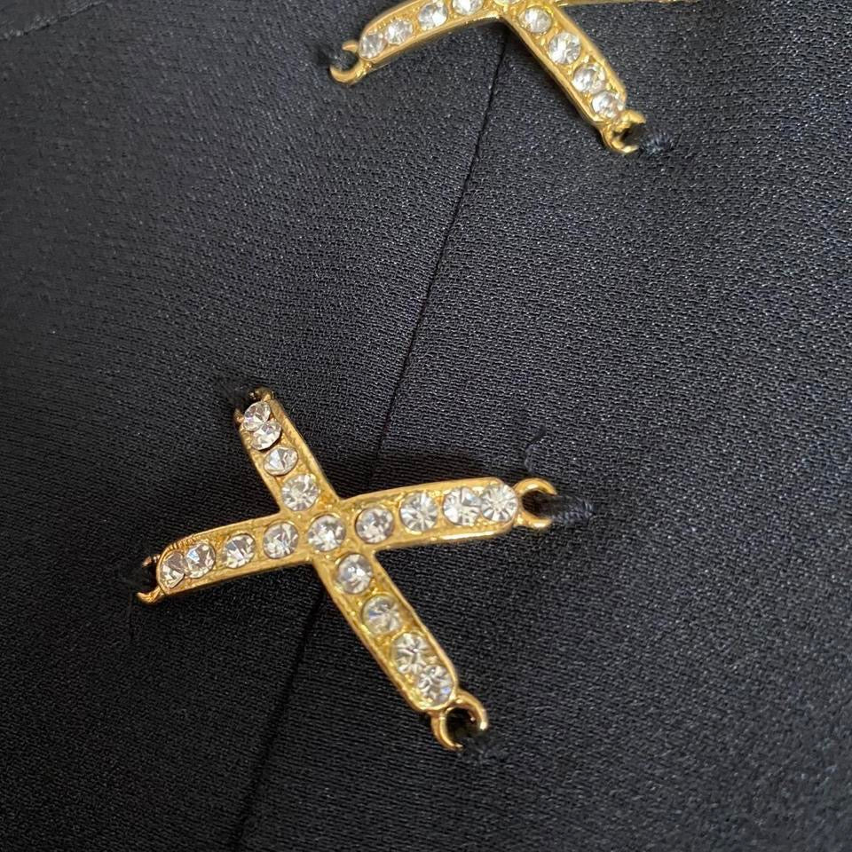🌹Black fitted evening dress with diamanté cross detailing to the front, a shaped bust & a zip up the back UK 14🌹