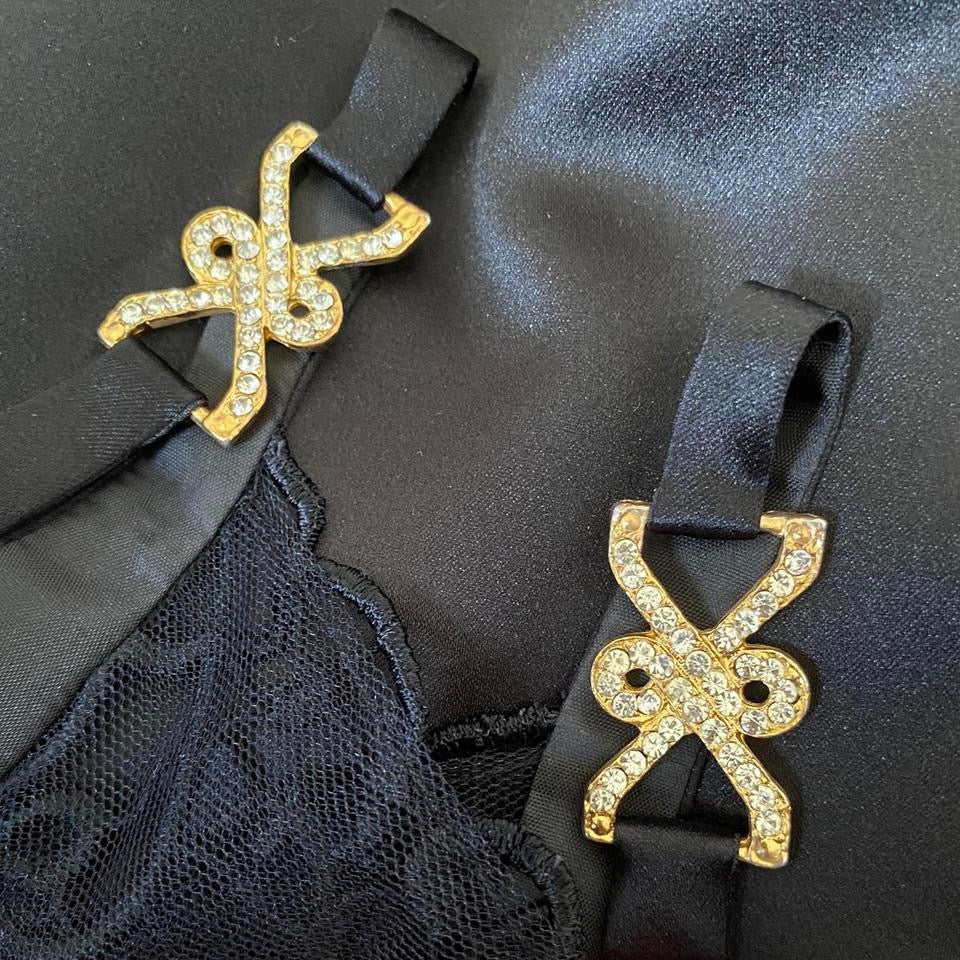 🌹Black a-line evening dress with a sheer lace back, diamanté detail straps & a zip up the side UK 10🌹