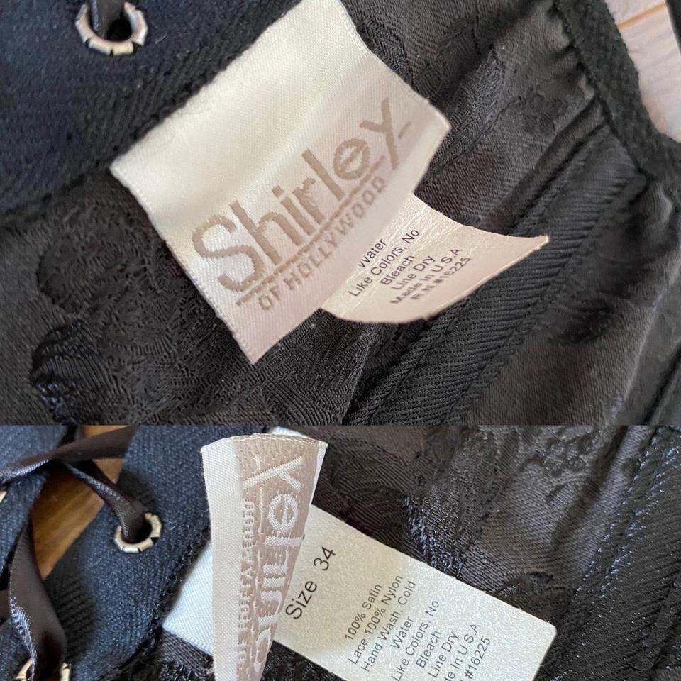 Black satin floral basque with a lightly padded underwire bra, adjustable straps, removable suspender straps, frilly lace sheer detailing, hook & eye fastenings at the front & an adjustable lace up back UK S-M