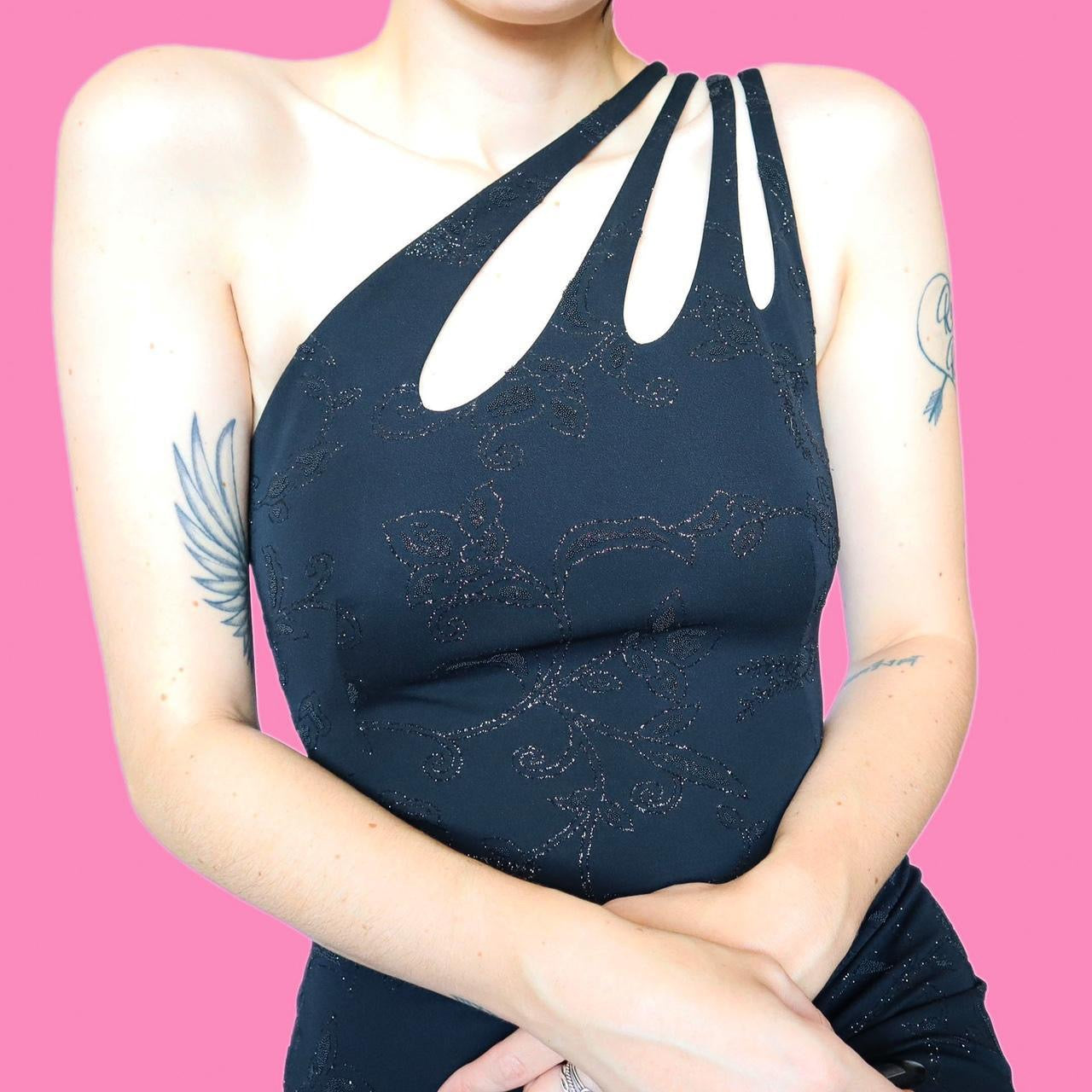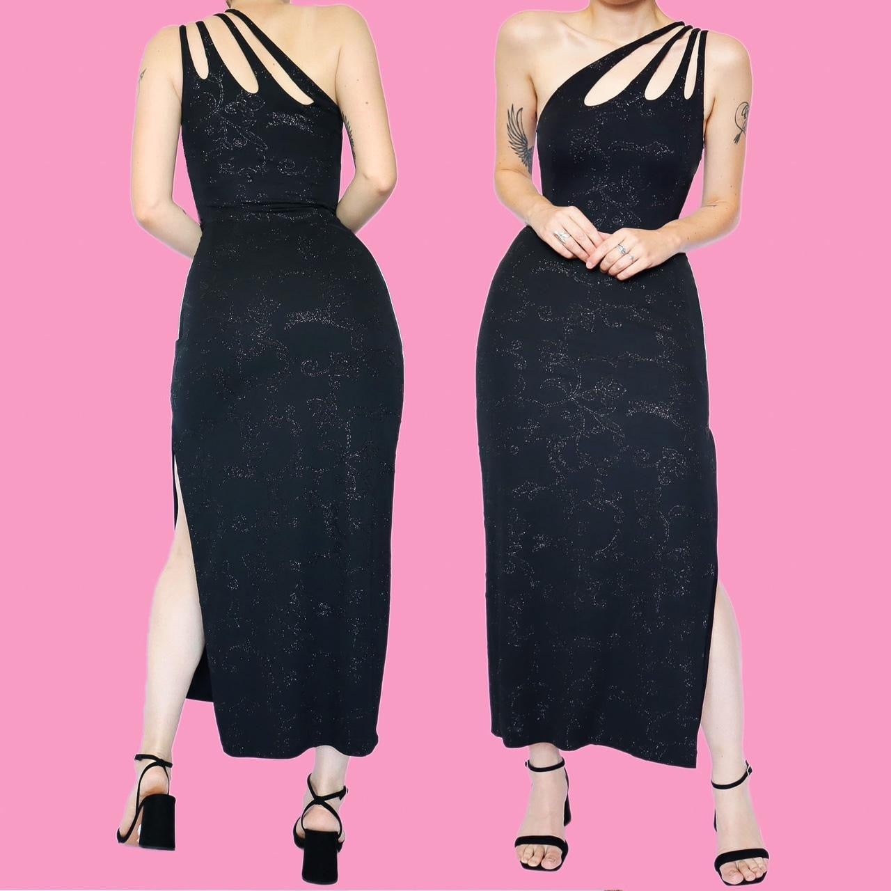 🌹Black bodycon evening dress UK 12🌹Chic black stretch beaded one shoulder detail maxi dress with a zip up the side🌹