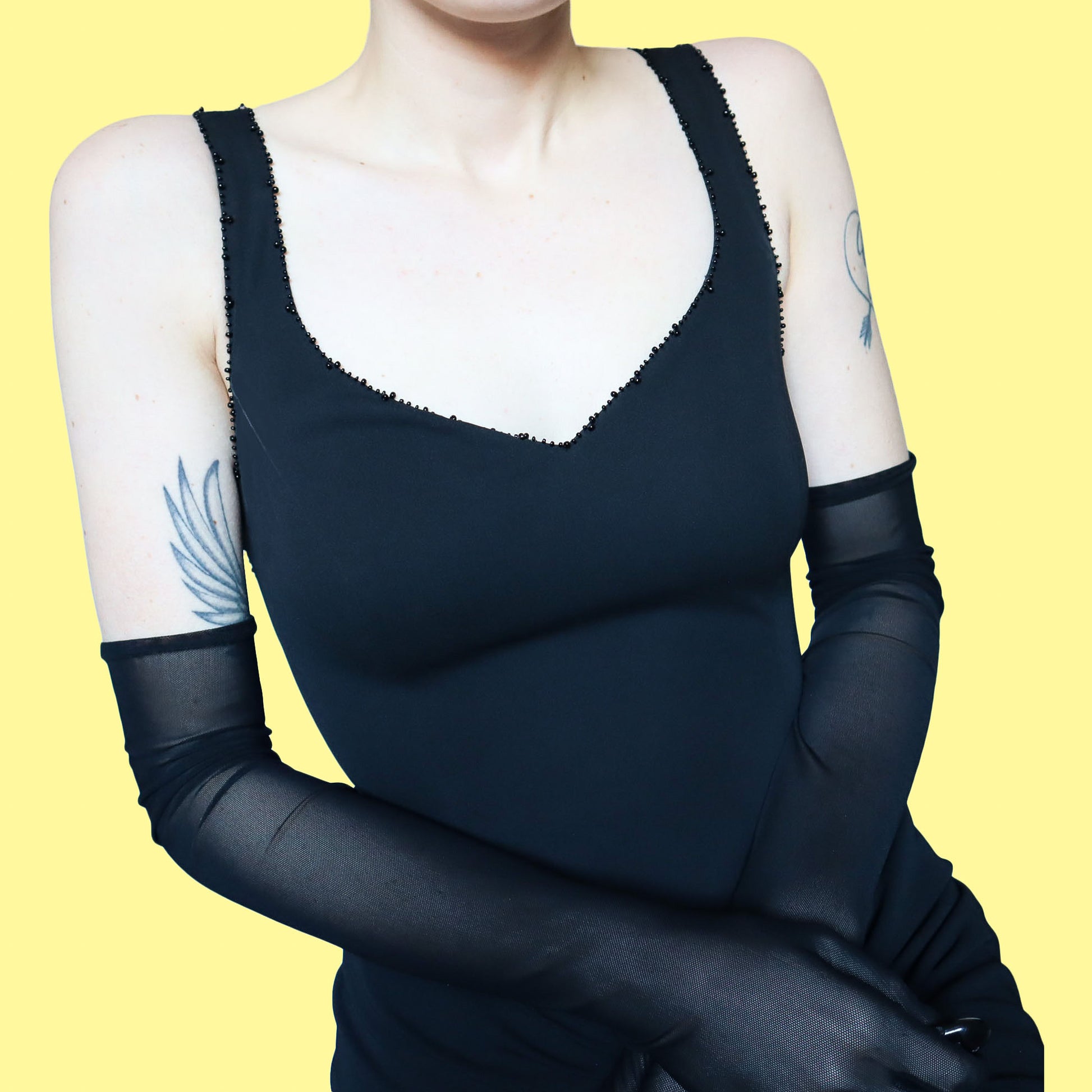 🌹Black beaded evening dress UK 12🌹Stunning black stretch evening dress with a sheer beaded back detail & a zip up the side🌹