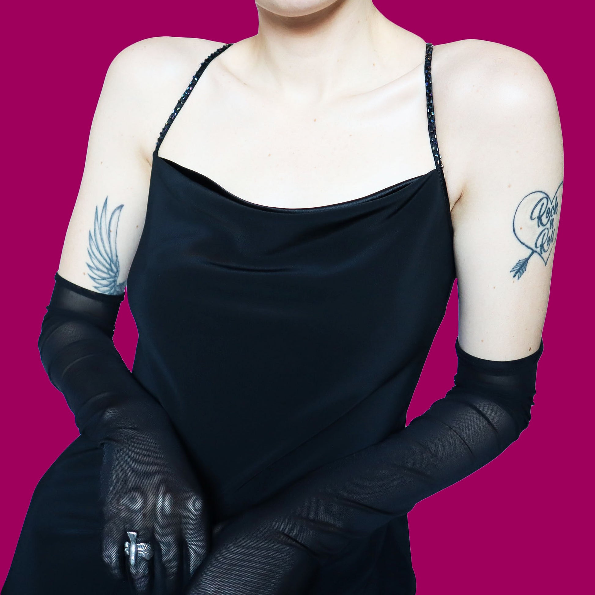 🌹Black slip dress UK 10🌹Stunning black evening dress with a satin hem, beaded straps & a cowl neckline🌹