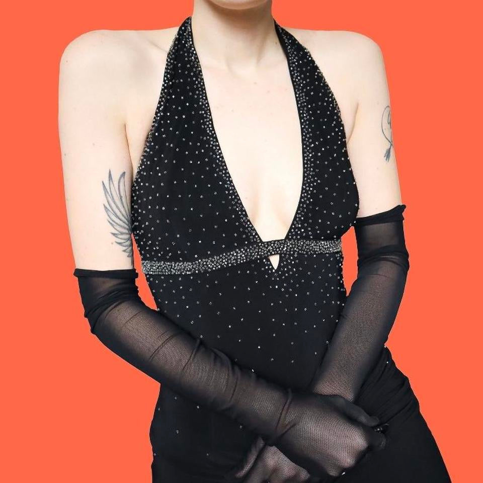Black DJ Nights stretch beaded halter neck evening dress UK 10, 12 & 14 available
