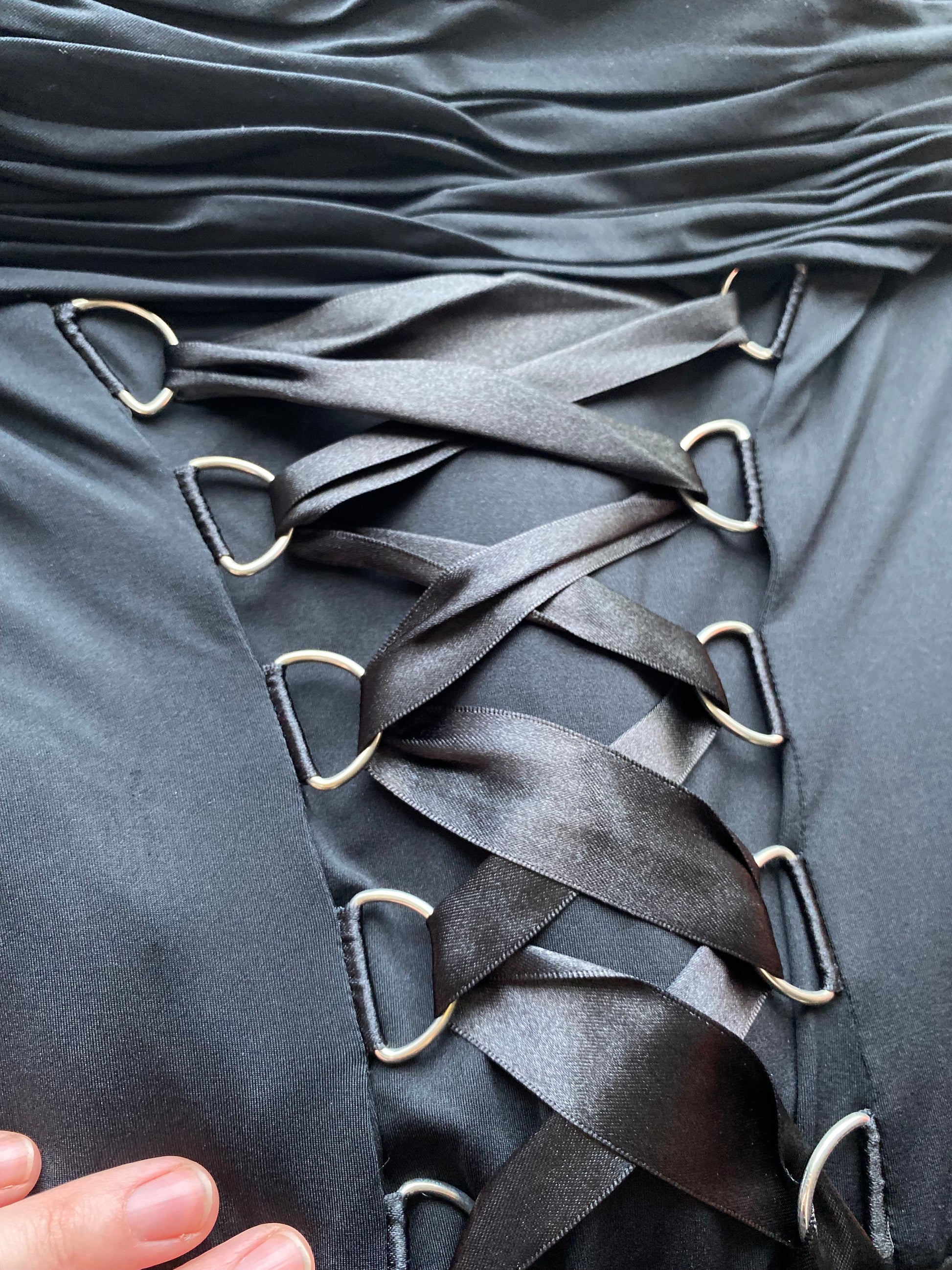 Black stretch gothic lace up evening dress UK 10