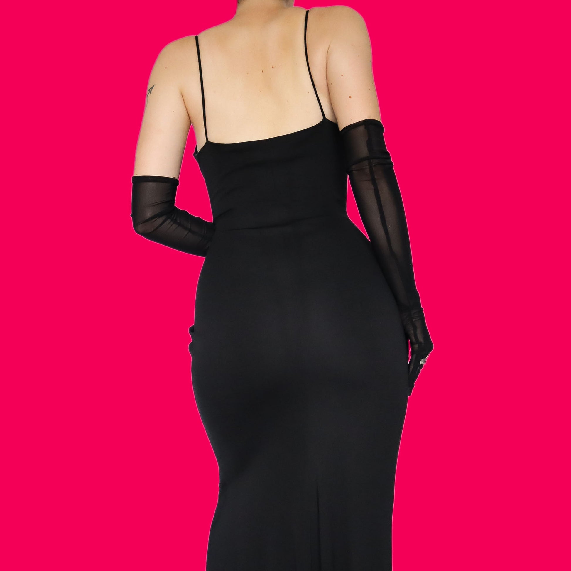 🌹Black low cut evening dress UK 10🌹Stunning black stretch evening dress with sheer cut out bust & gem detailing🌹