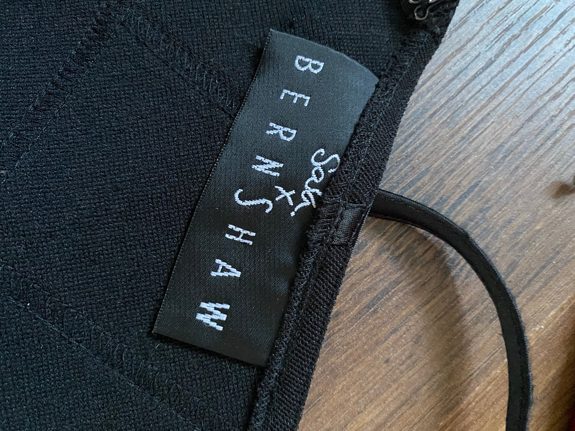 Black stretch evening gown with stretch bodice, sheer flowing hem detail & a zip up the back UK 8-10