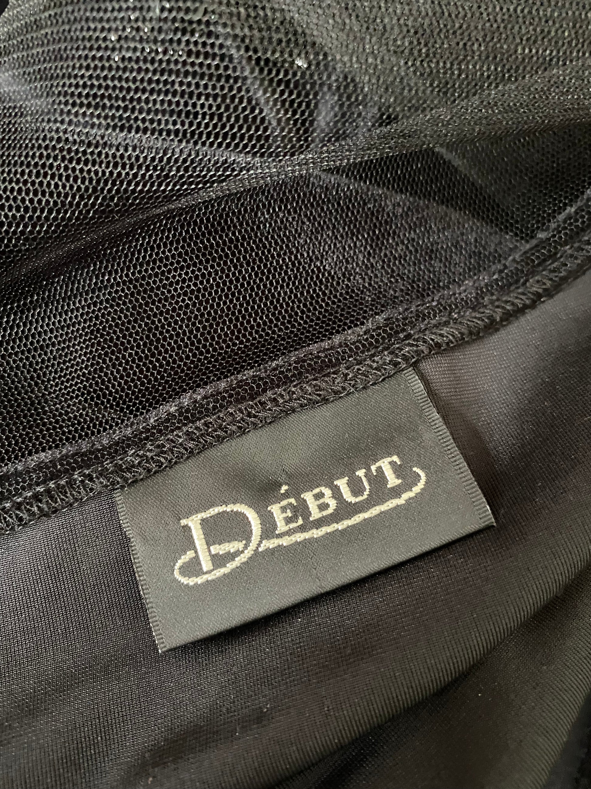 🌹Black velvet stretch evening dress with a slit up one side, a sheer bead detail neckline & back, a padded bust & button fastenings up the back UK 12🌹