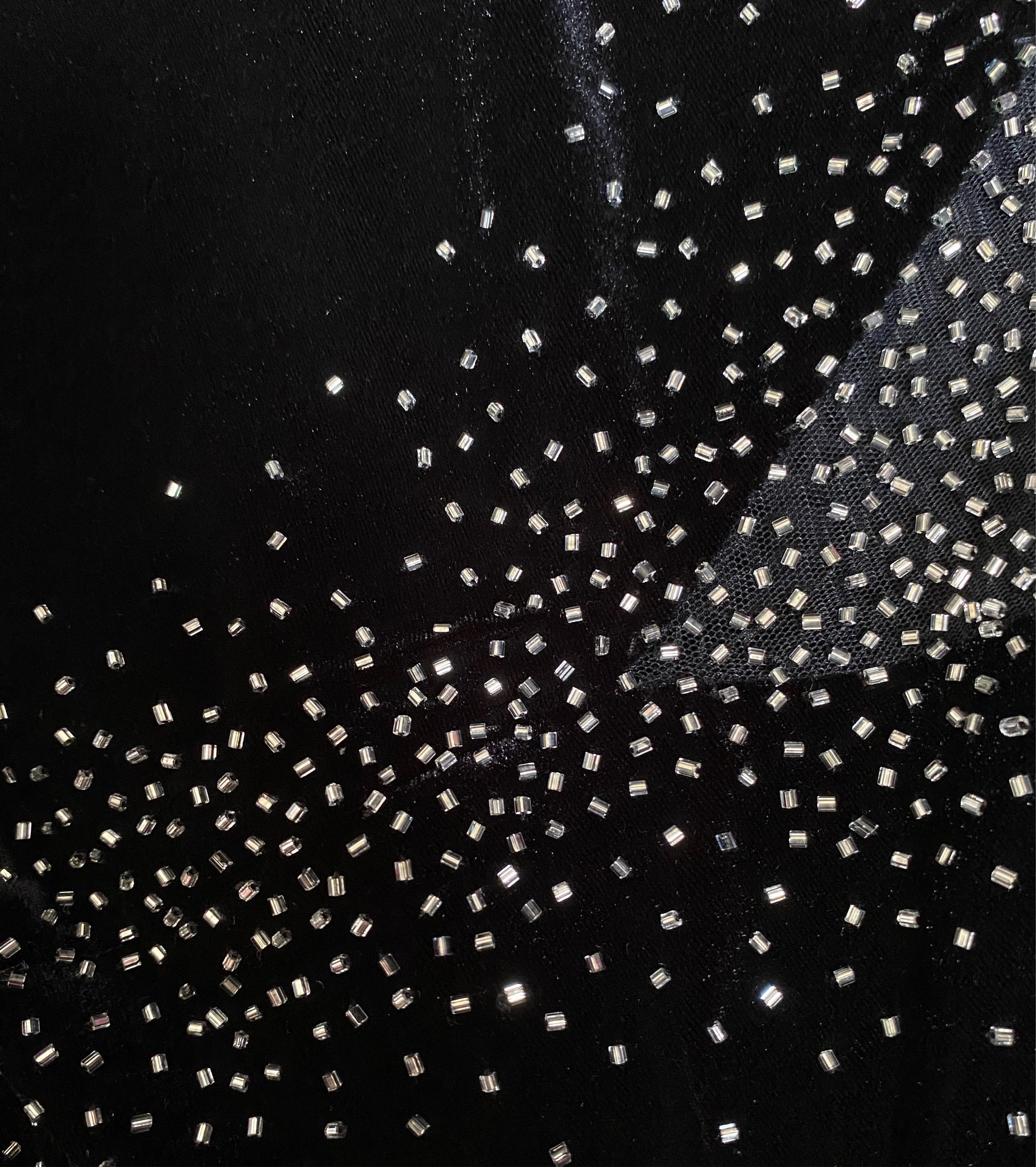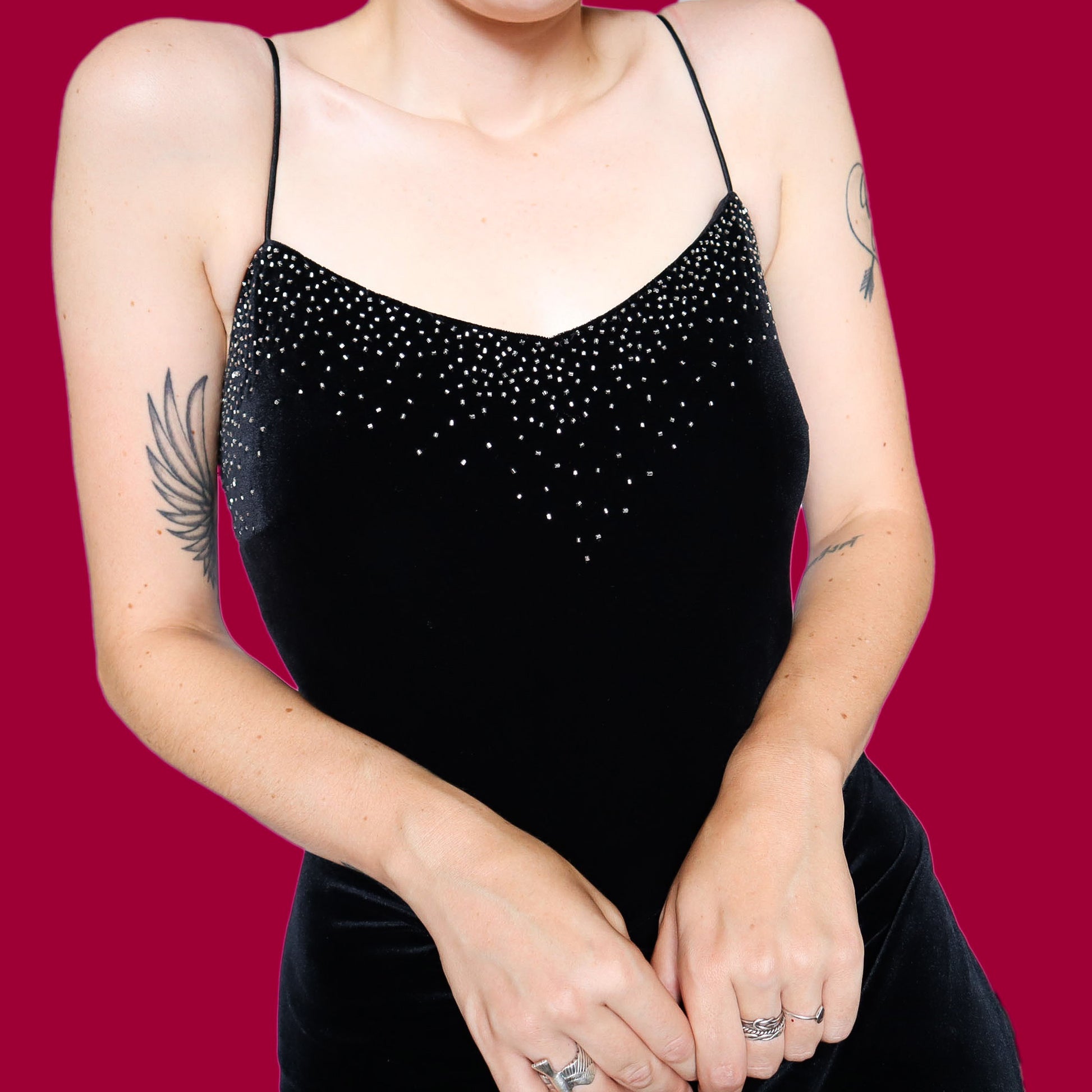 Black velvet beaded stretch evening dress UK 12 & UK 14