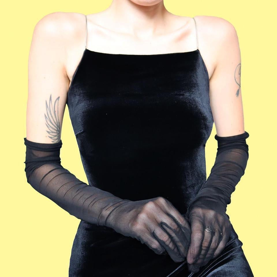 🌹Black velvet bodycon stretch evening dress with silver strap detailing UK 14🌹