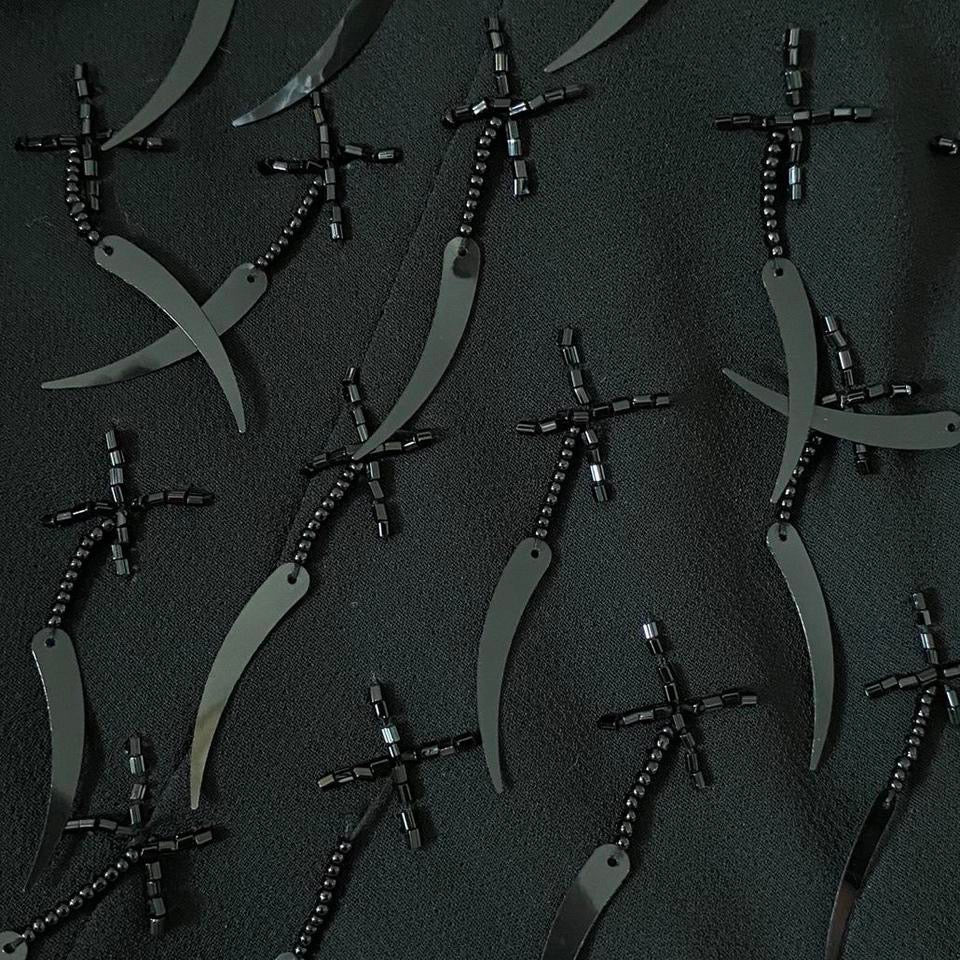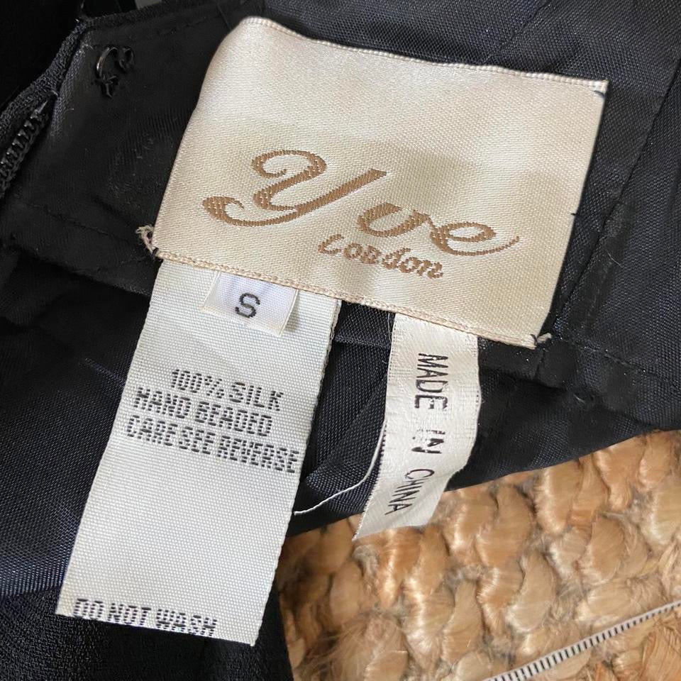 🌹Black 100% silk chiffon evening dress with beautiful bead & sequin detailing, a padded bust, a zip up the back & hook & eye fastening at the back strap UK 10-12🌹