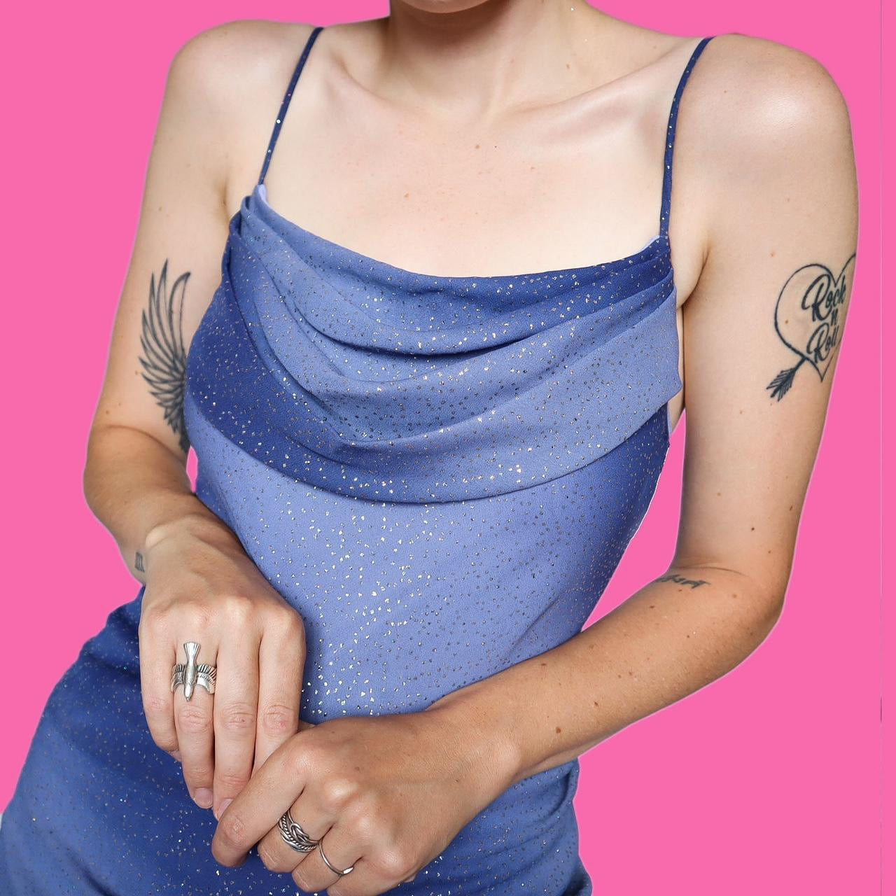 🌹Blue glitter evening dress UK 12🌹Beautiful blue glittery slip stretch evening dress with cowl neckline🌹