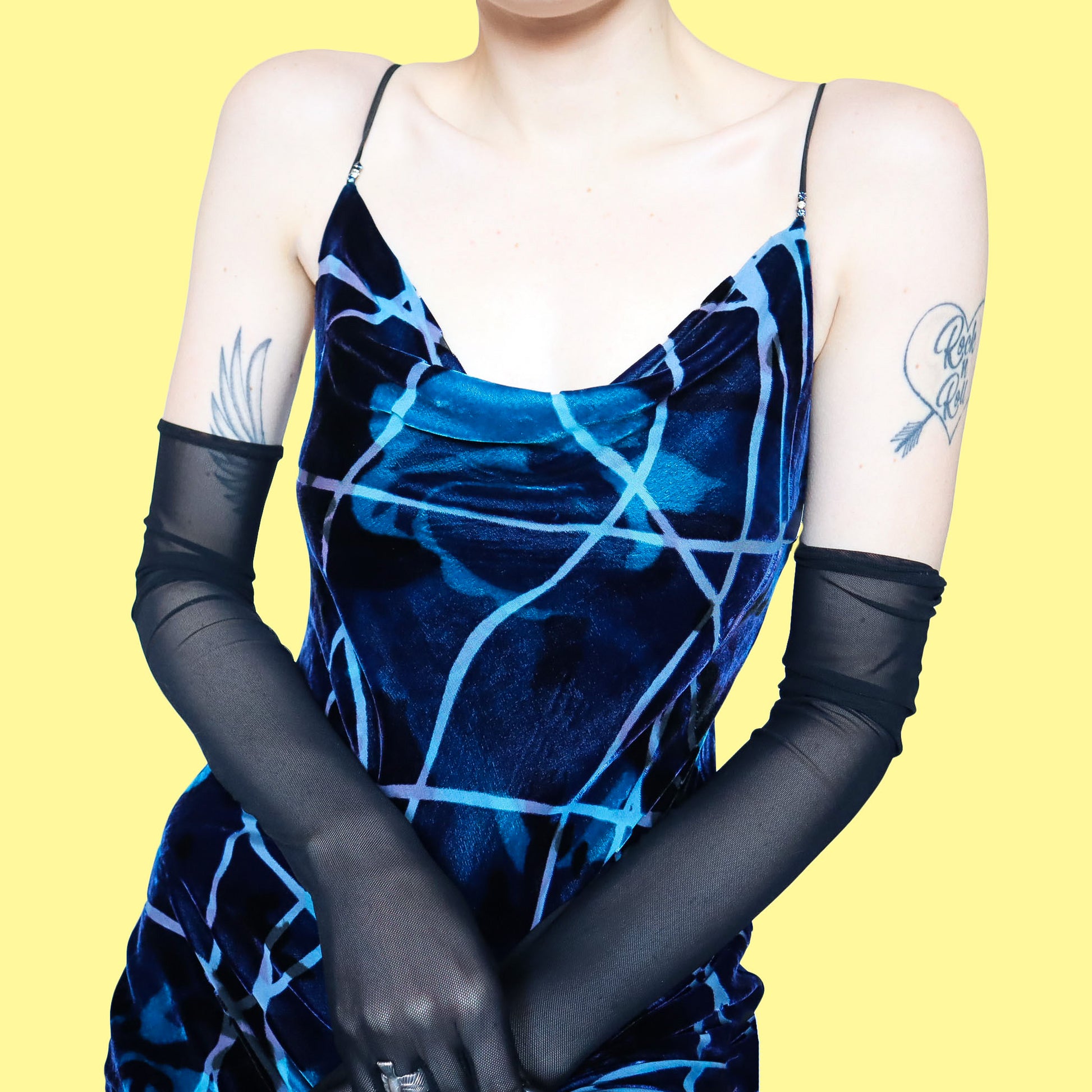 🌹Blue silk blend velvet slip dress UK 10🌹Beautiful 20% silk blend velvet evening dress with a cowl neckline & cross over straps at the back🌹