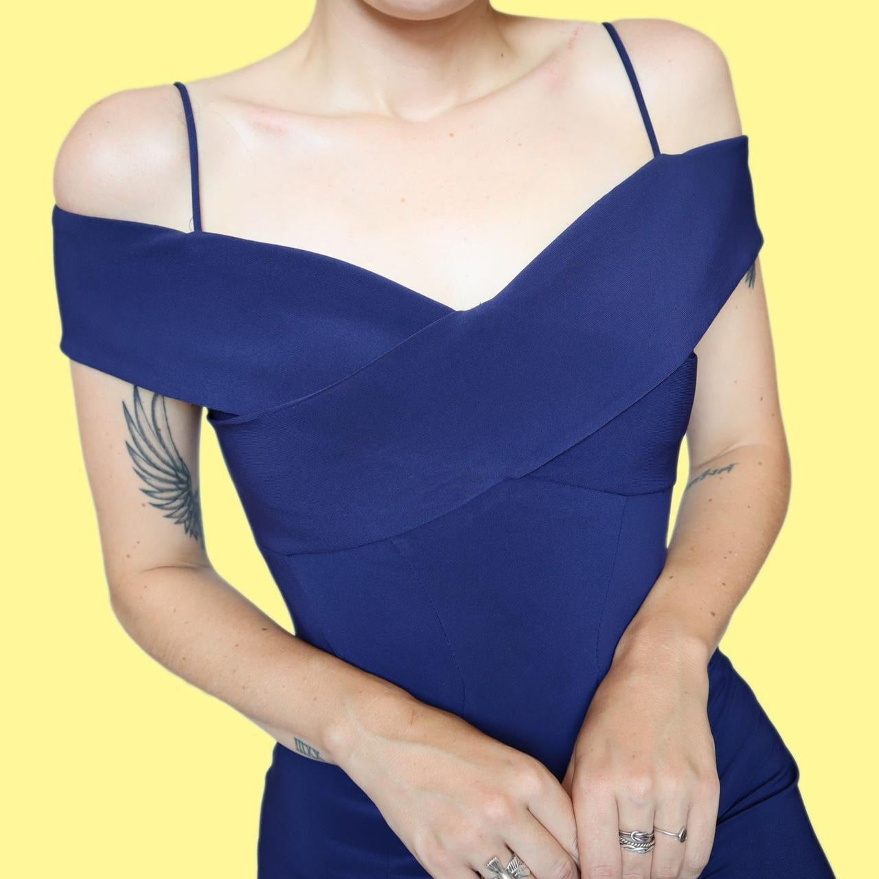 🌹Blue stretch cold shoulder evening dress with a padded bust, a slit up one leg & a zip up the back UK 10🌹