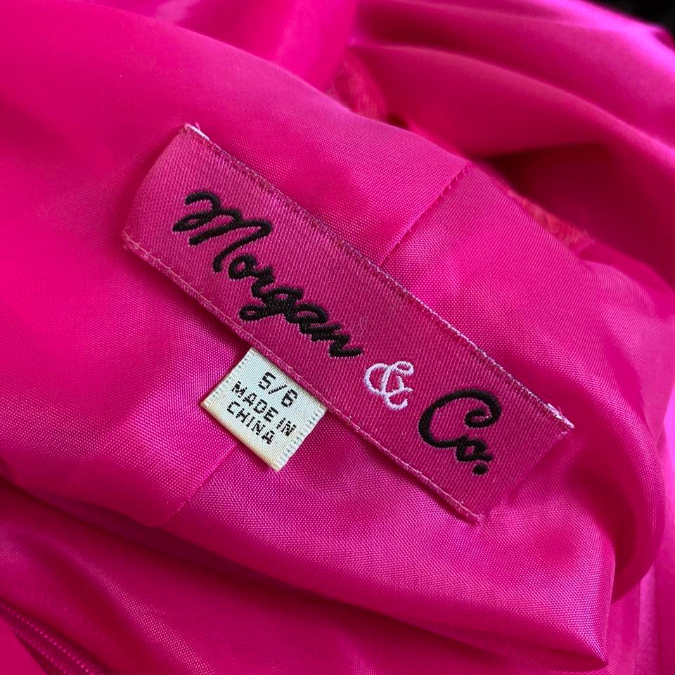 🌹Bright pink satin halter neck evening dress with a gem & sequin detail bust & back, a padded bust, hook & eye fastenings at the back of the neck, a sheer back & a zip up the side UK 12🌹