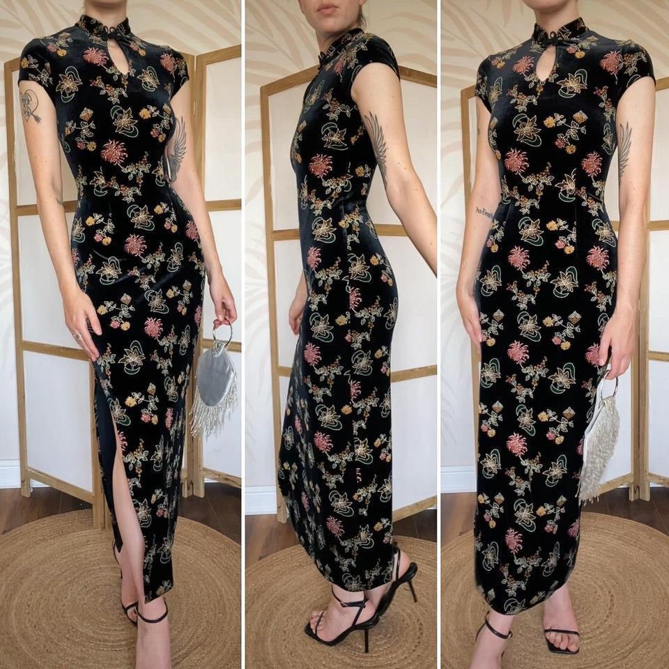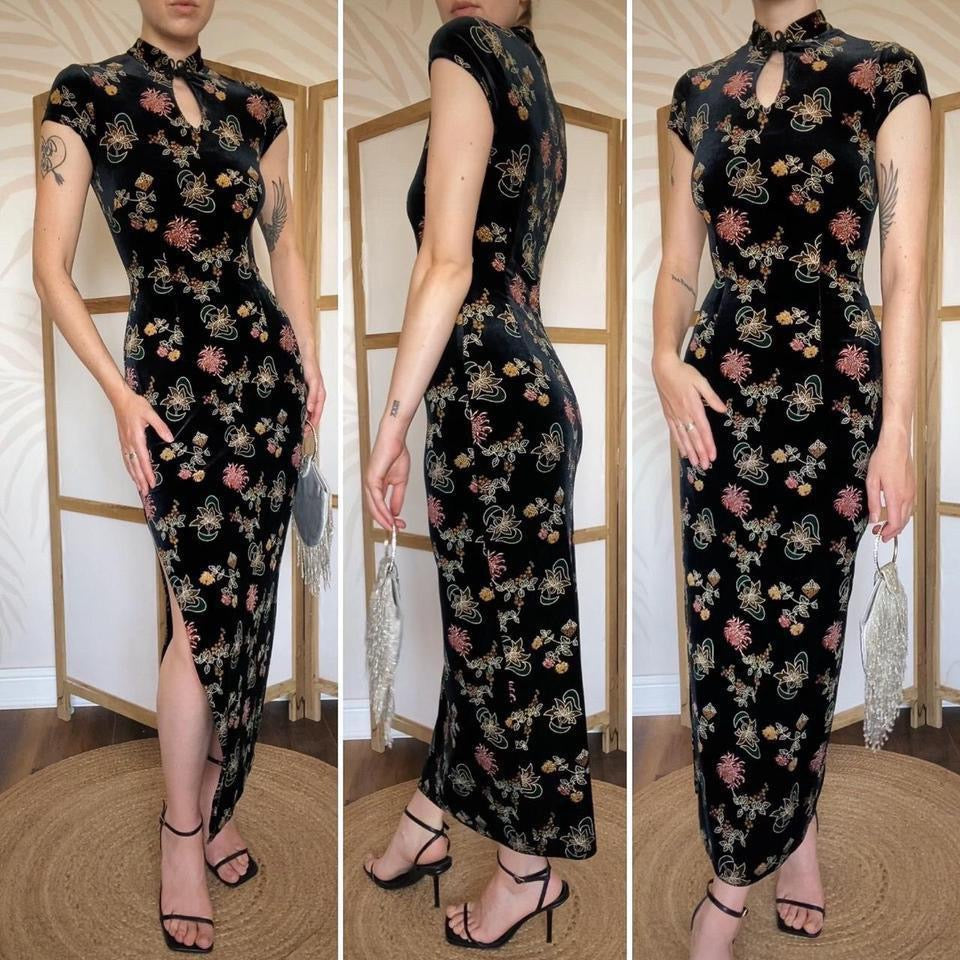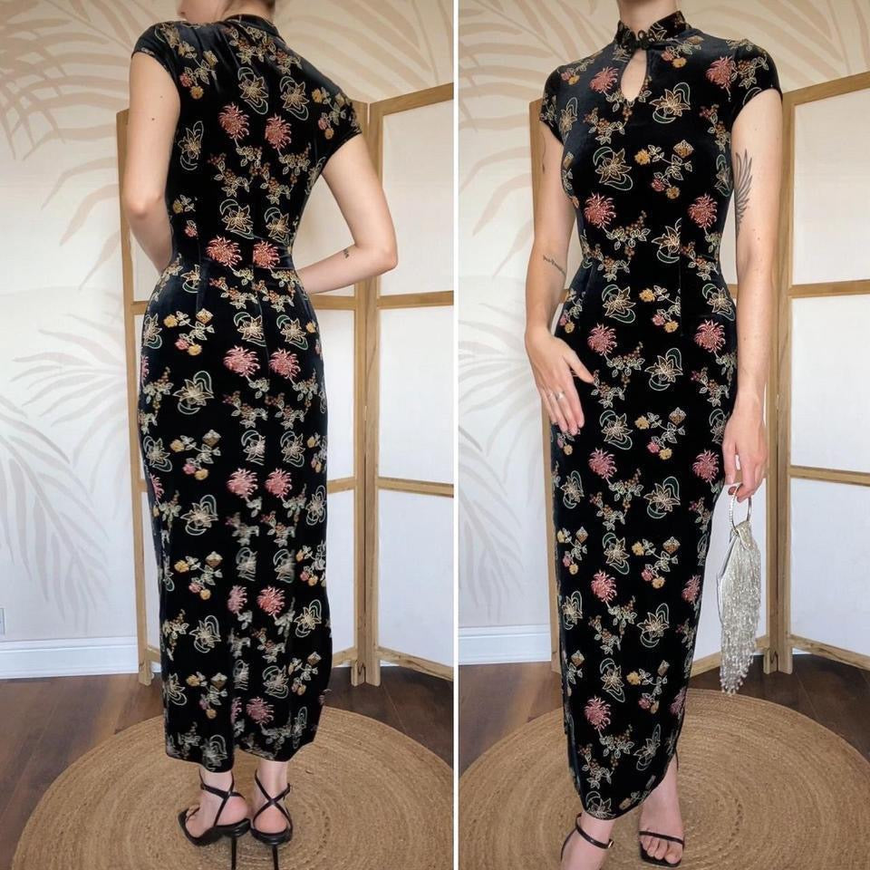 🌹Black velvet dress UK 14🌹Chic black velvet evening dress with a knot fastening at the neck, short cap sleeves & a slit down one side🌹