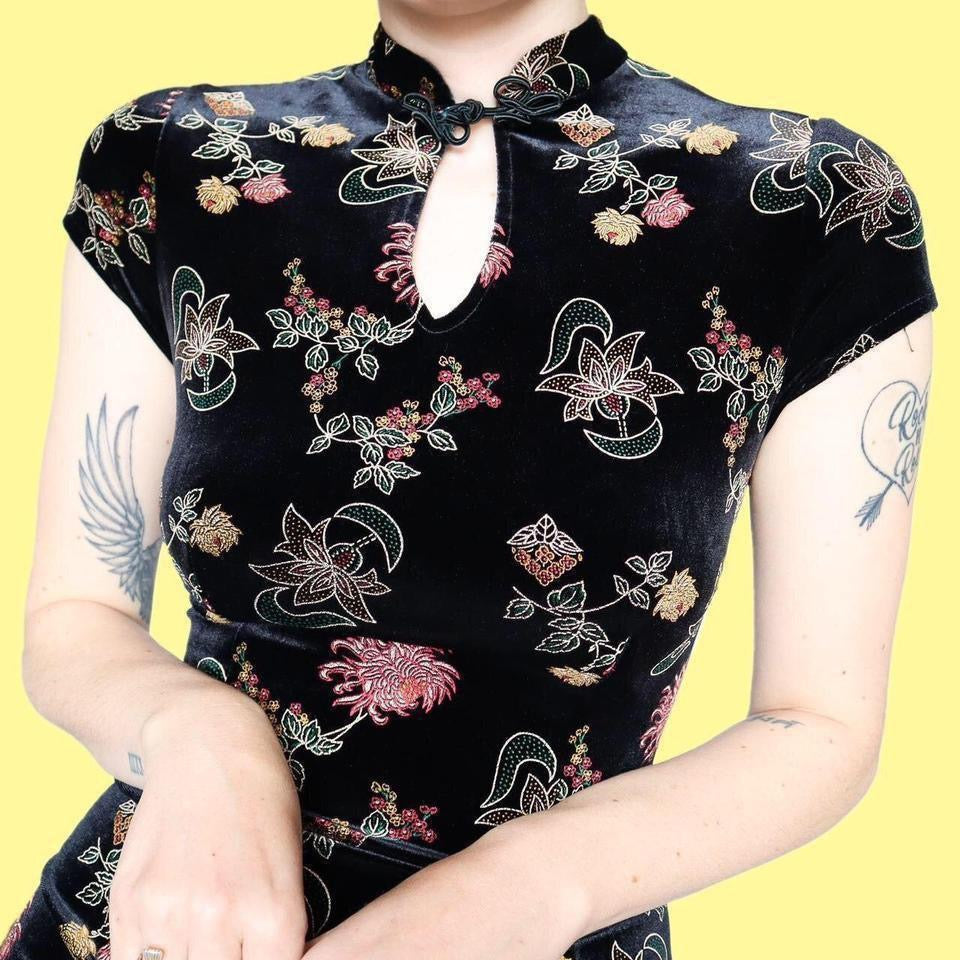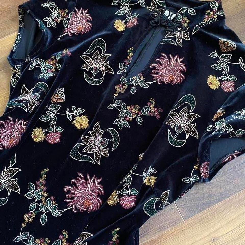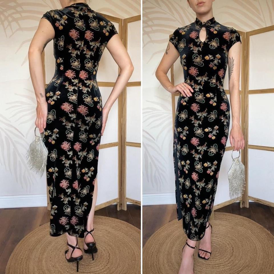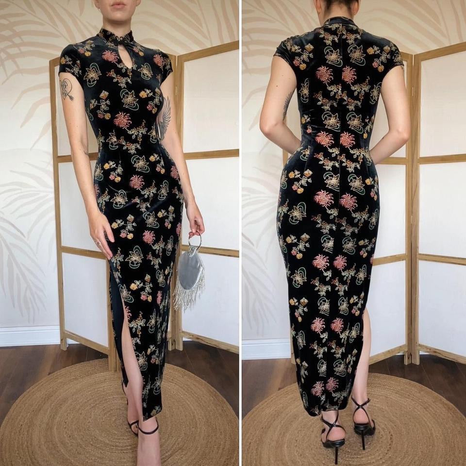 🌹Black velvet dress UK 14🌹Chic black velvet evening dress with a knot fastening at the neck, short cap sleeves & a slit down one side🌹
