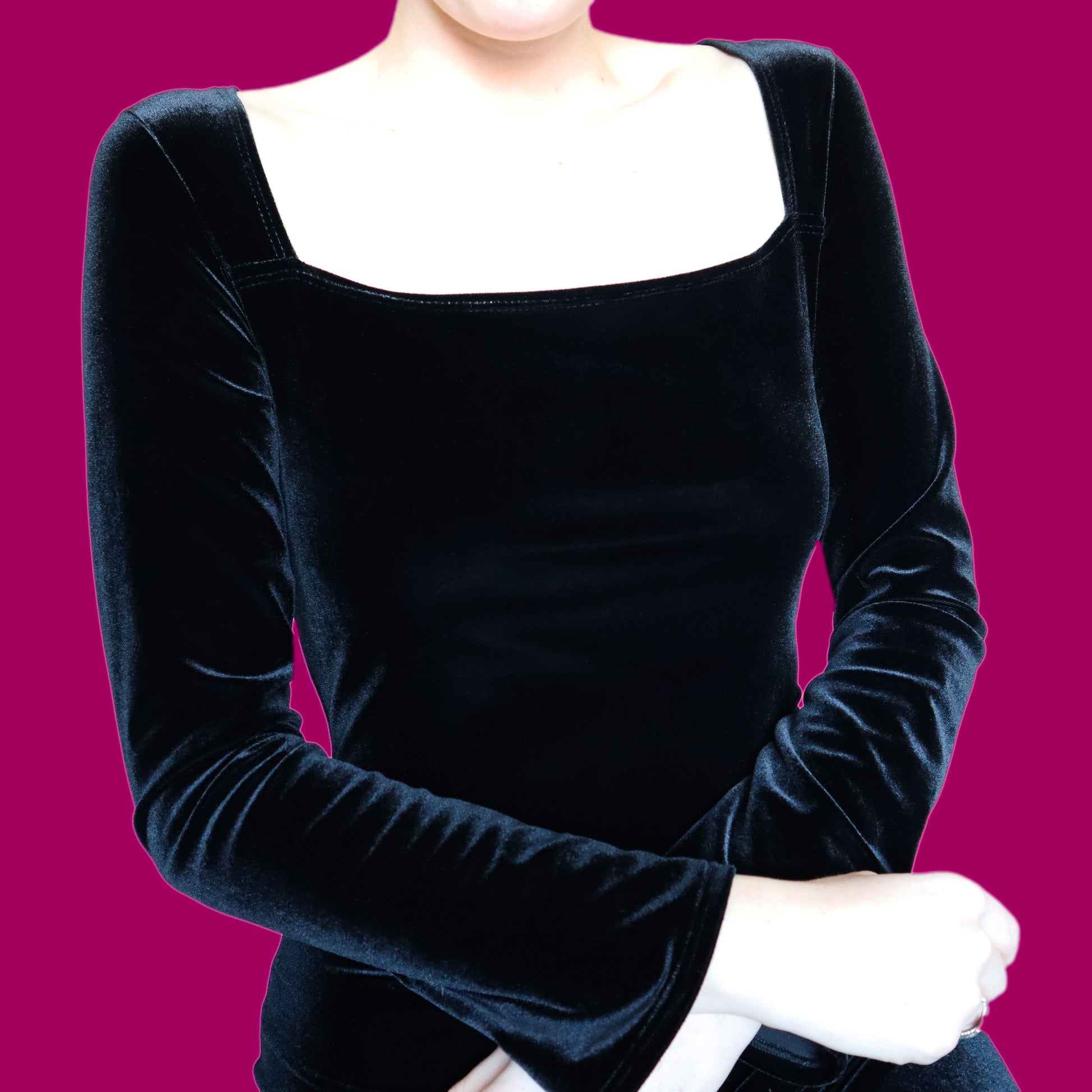 🌹Stunning black velvet stretch long sleeve evening dress with a light flare at the hem UK 14🌹