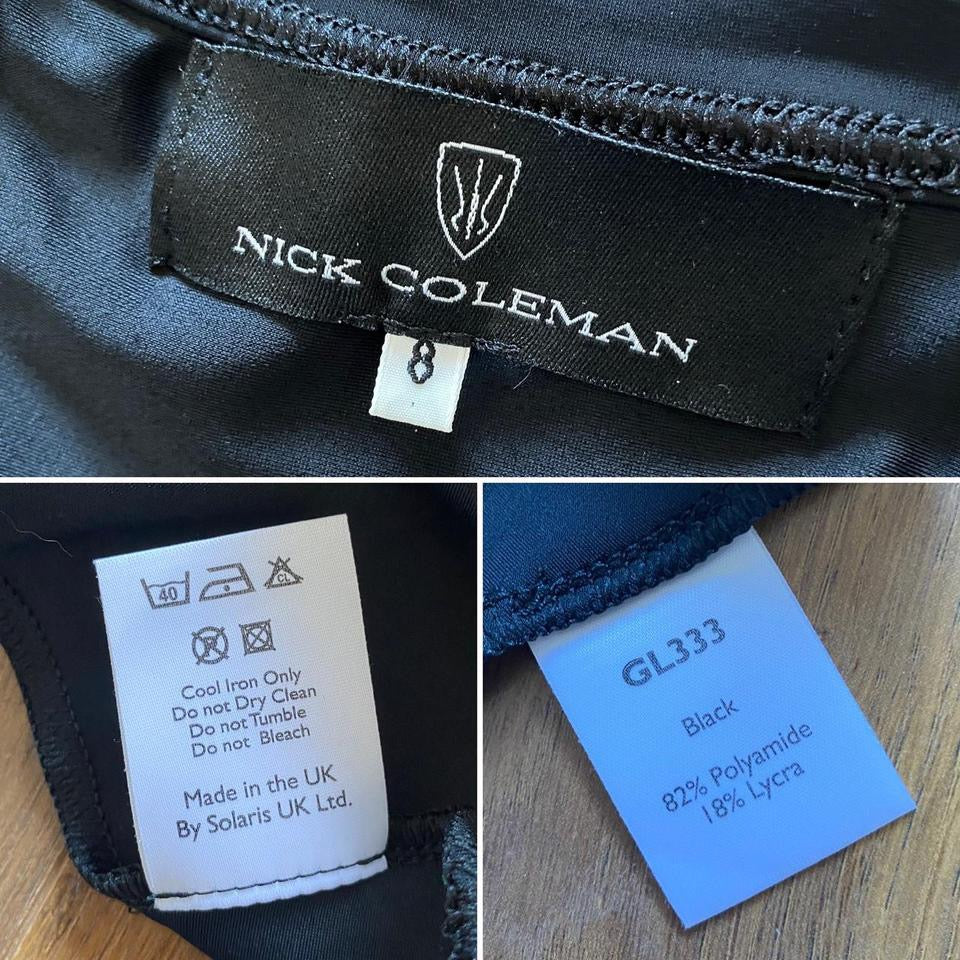 Designer Nick Coleman black stretchy bodycon dress with a high neck, slits at the shoulder & a slit up one side UK 8