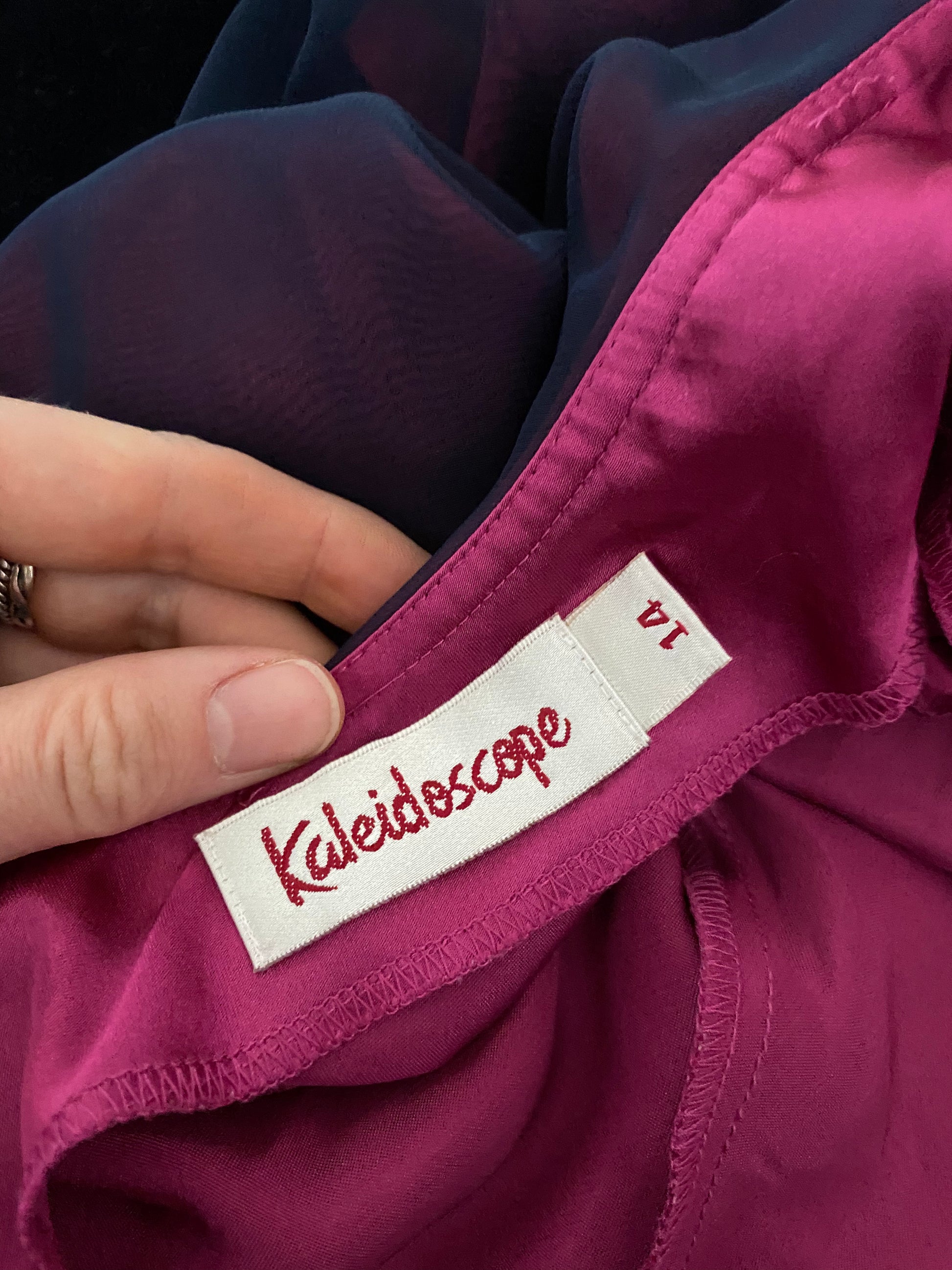 🌹Stunning purple iridescent chiffon evening dress with a slit down one side UK 14🌹