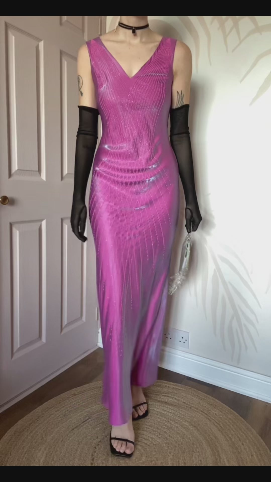 🌹Silky pink beaded evening dress UK 10🌹Beautiful pink silky iridescent evening dress with beading down the front & a lace up back🌹