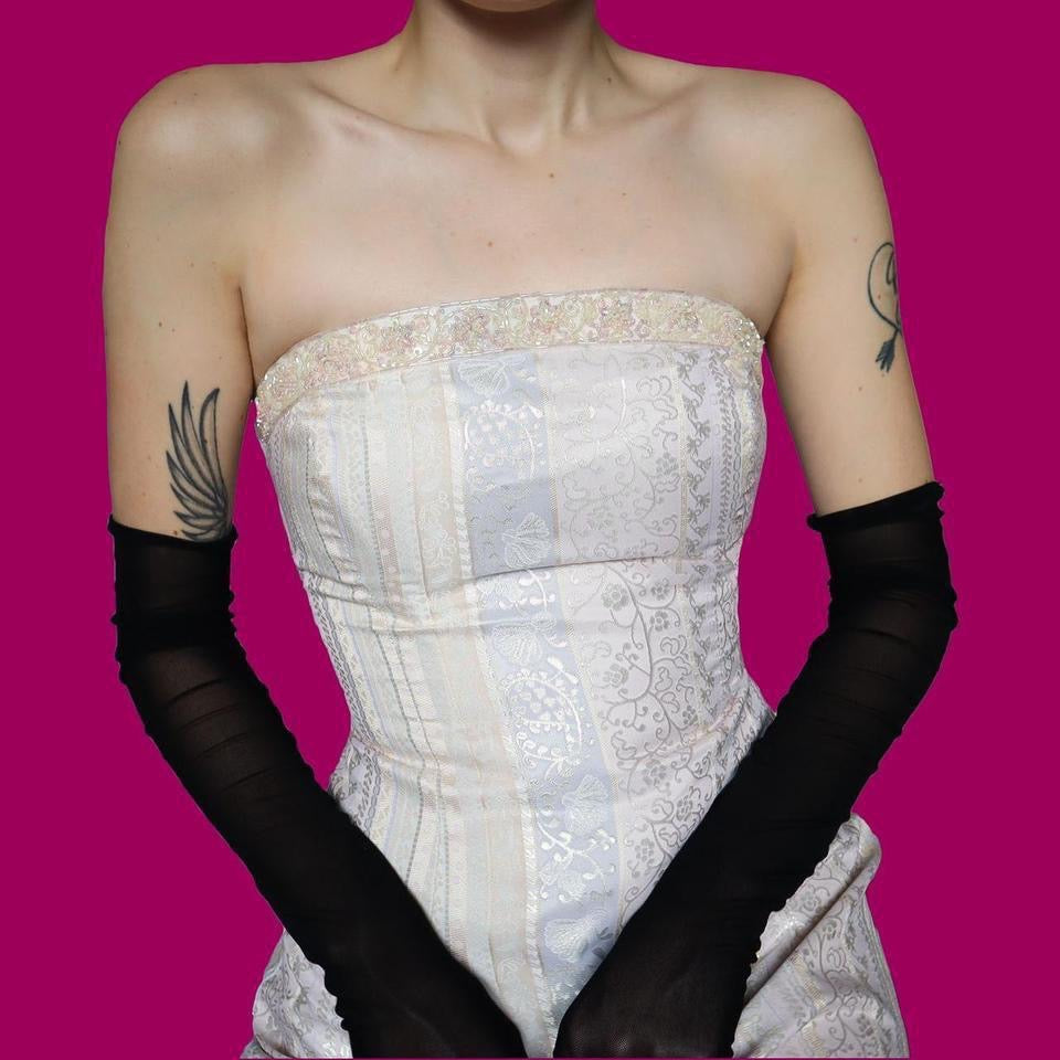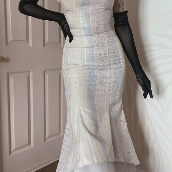 Cream Zum Zum strapless fishtail evening gown UK 8
