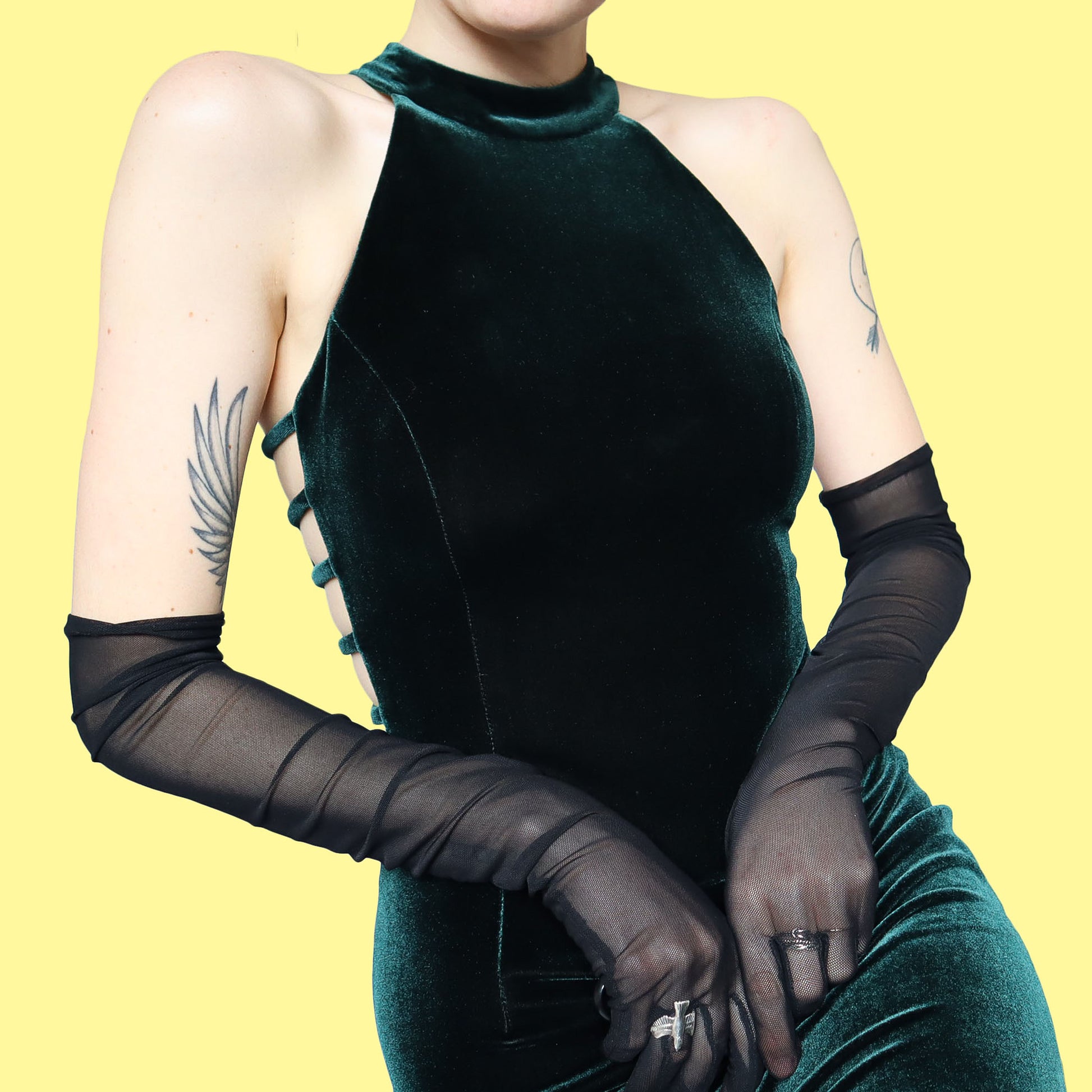 🌹Dark green John Charles velvet stretch high neck evening dress with cut out detailing to both sides, a zip up the back & hook & eye fastenings at the back of the neck UK 12🌹