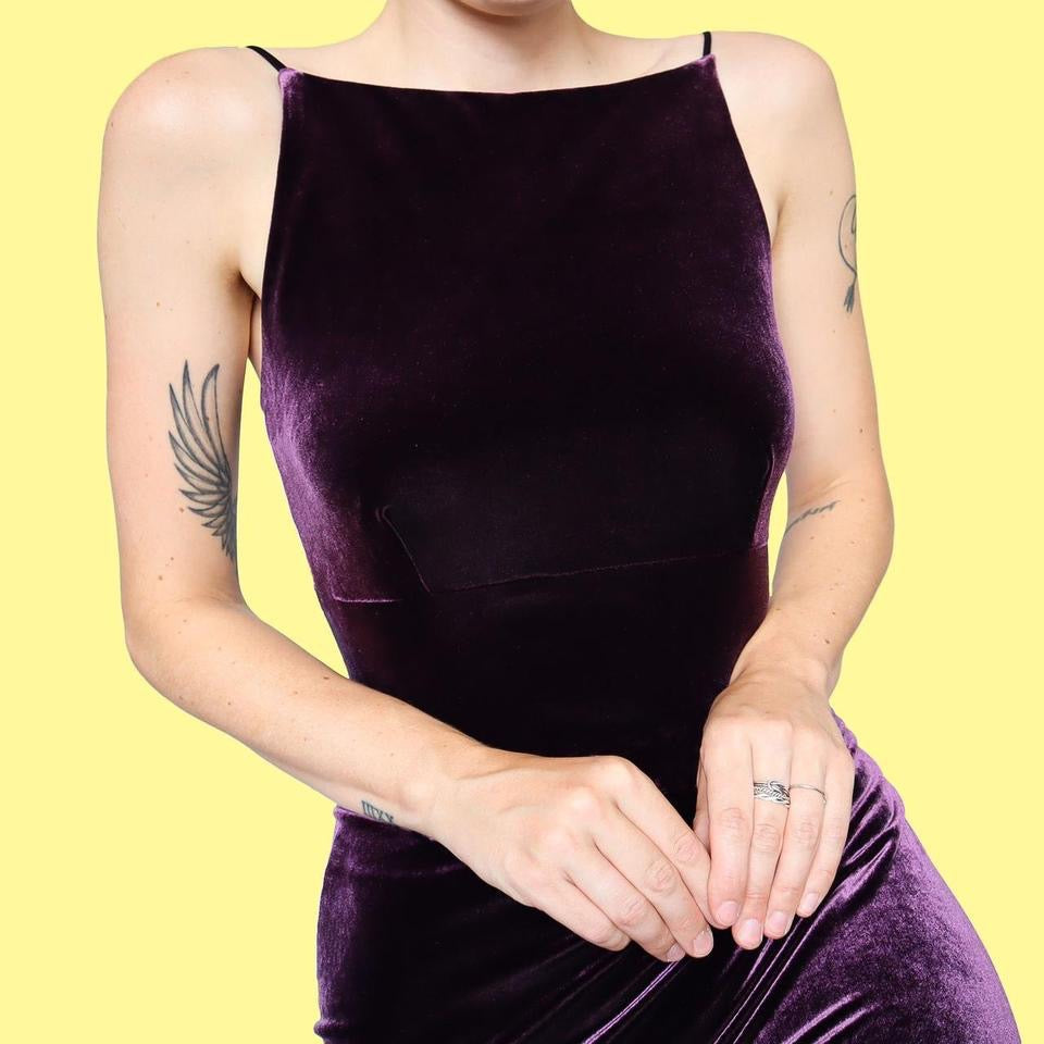 🌹Dark purple velvet stretch bodycon maxi dress with a low open back UK 10🌹