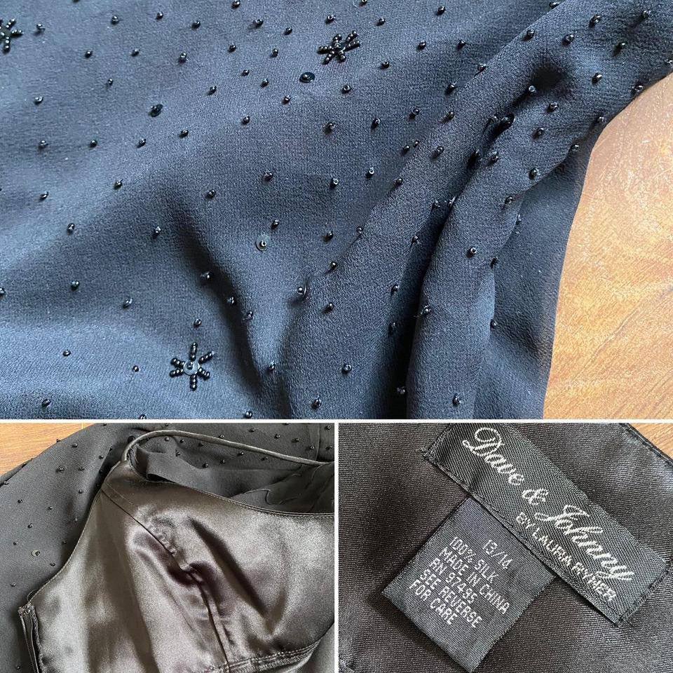 Dave & Johnny 100% silk beaded black evening dress uk 14