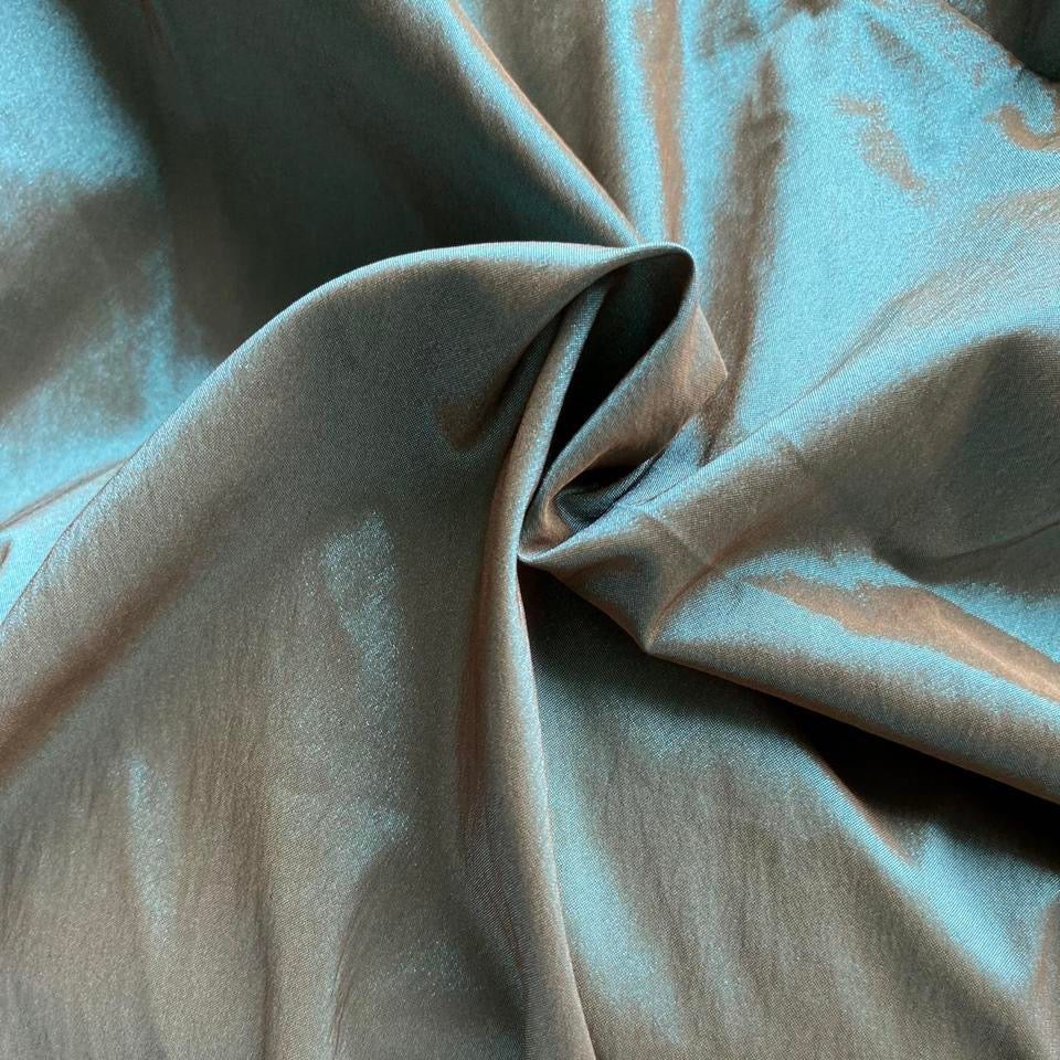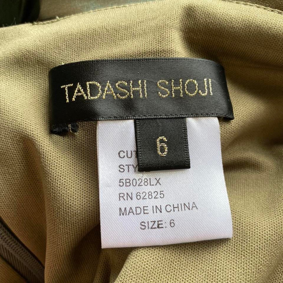 Designer Tadashi green iridescent draped a-line evening dress gown with a zip up the back & a small amount of give to the fabric UK 12