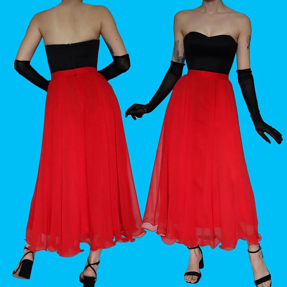 Red Frank Usher chiffon maxi skirt with a zip/hook & eye fastening at the waist UK 8