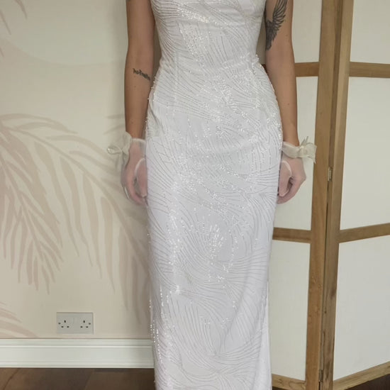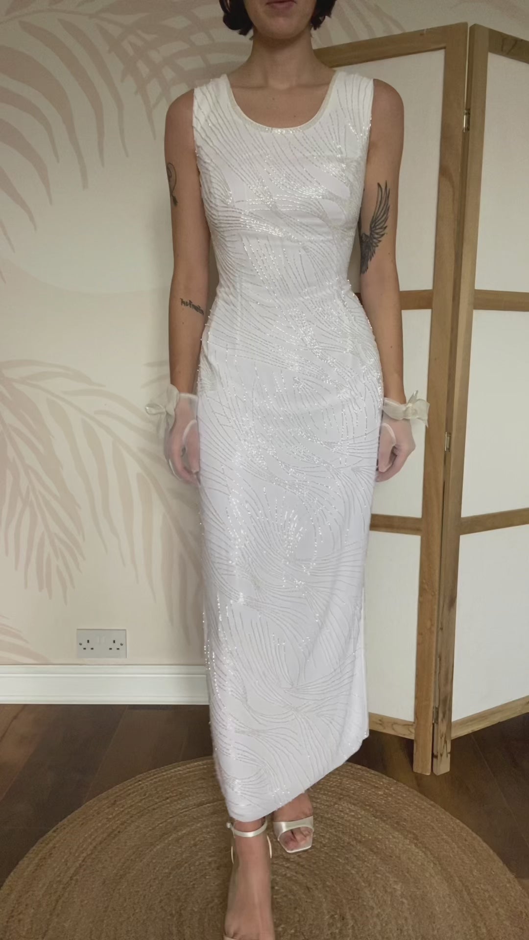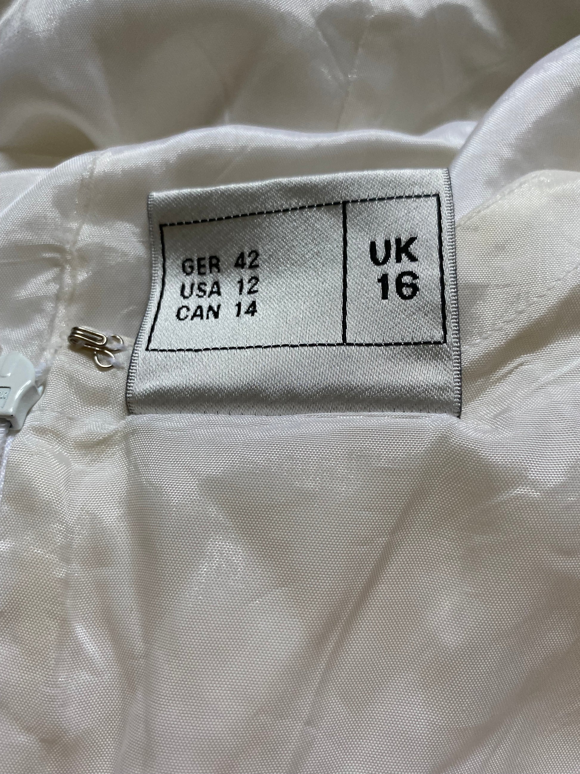 Bright white Frank Usher beaded wedding dress with a zip up the back UK 16