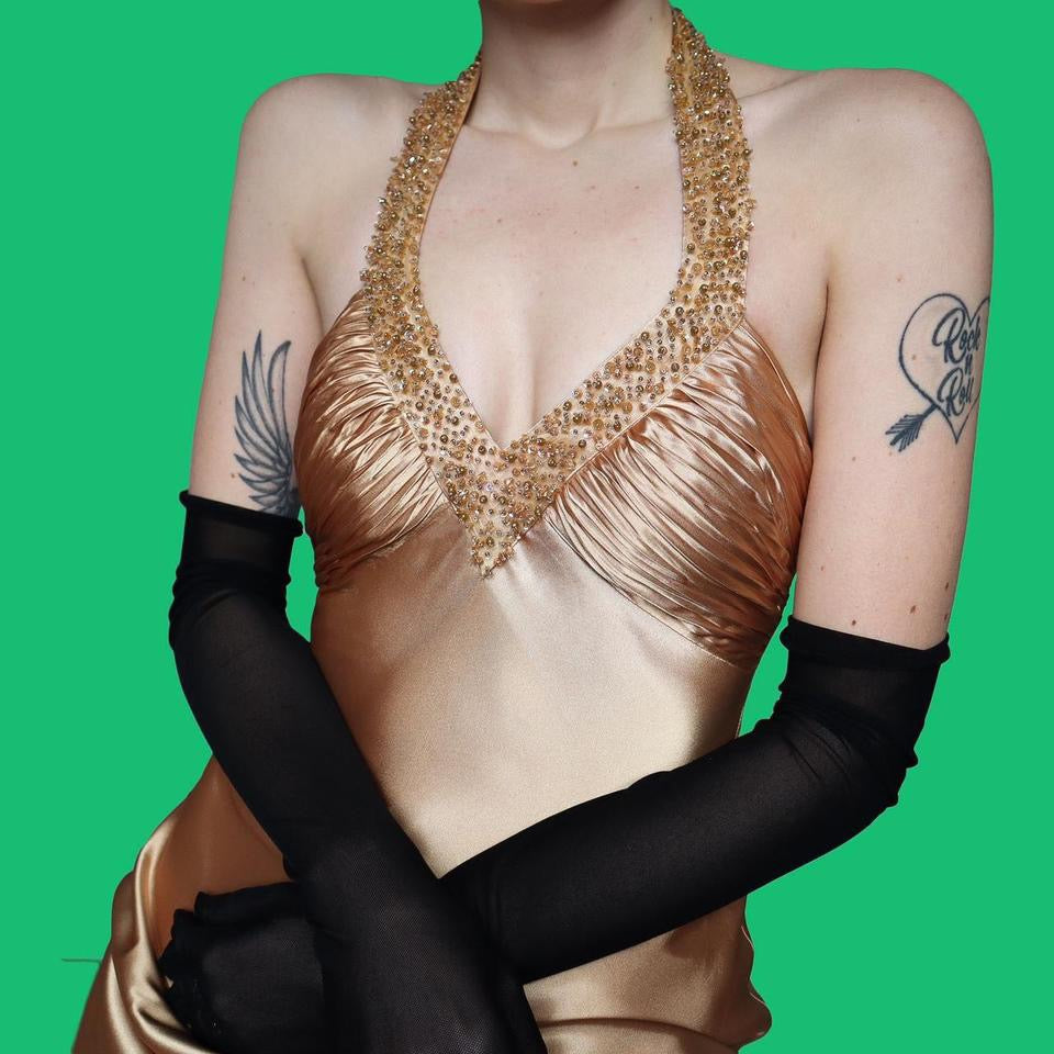 🌹Gold satin prom dress UK 8🌹Beautiful silky gold halter neck evening dress with a beaded bust, zip up the back & a hook & eye fastening at the back of the neck🌹